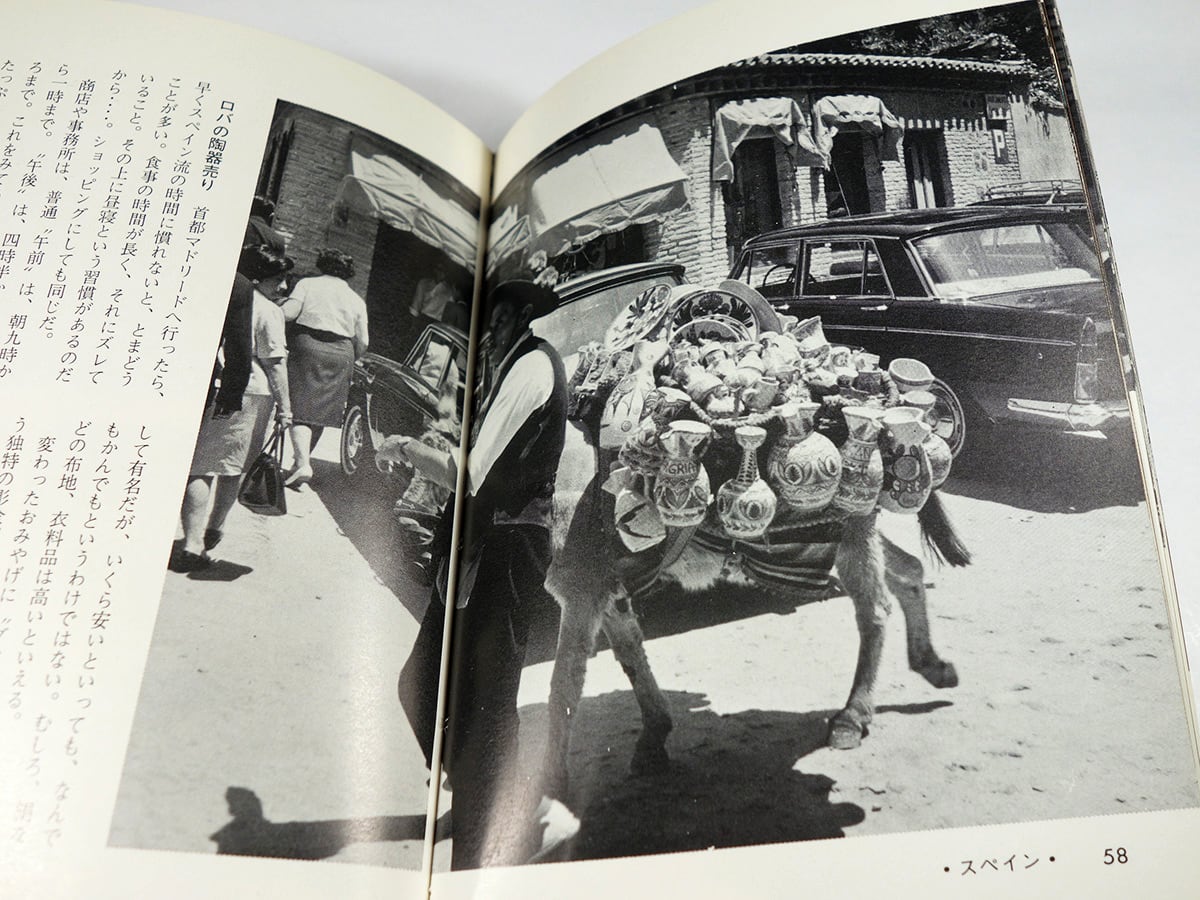 スペインの郊外では、ロバの背にいろいろな商品を積んだユーモラスなみやげもの売りの姿が見られる。写真はマジョリカを積んでいる。