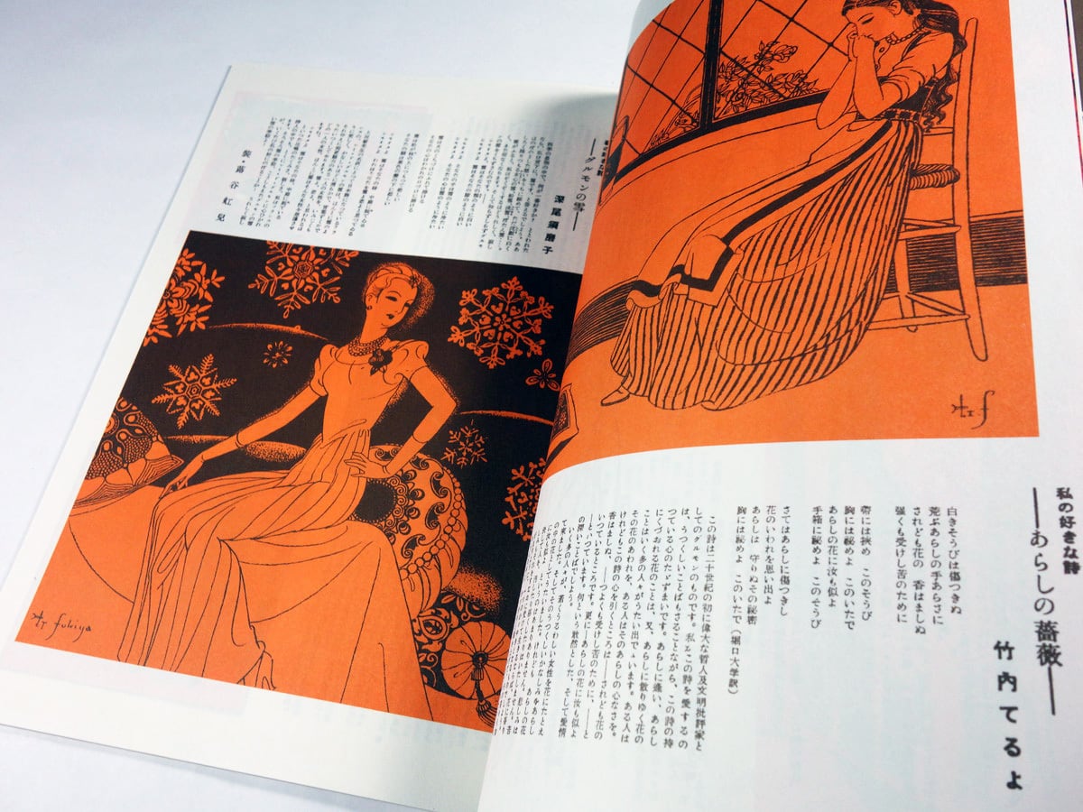 海外の名作映画を紹介するグラビア記事、深尾須磨子訳によるレミ・ド・グールモンの詩、中原淳一のスタイル画「ひまわりみだしなみセレクション」など。装画・挿画、中原淳一、蕗谷虹児、初山滋、松本かつぢ、鈴木悦郎、花森安治ほか。