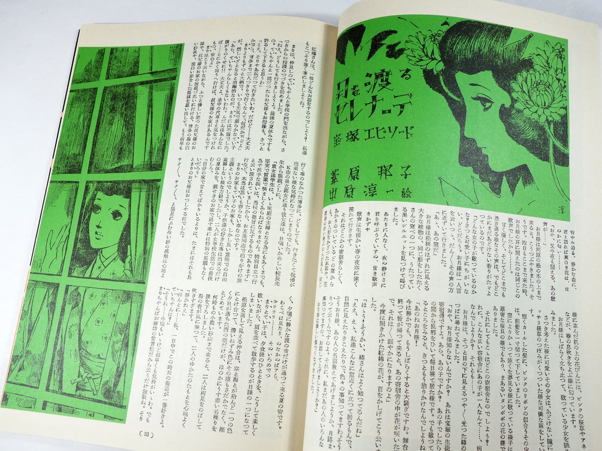 葦原邦子による宝塚エピソード「月を渡るセレナーデ」(中原淳一・画)、鈴木悦郎が挿絵が魅力的な詩「別れ」、蕗谷虹児の六色口絵「雛の灯」など。