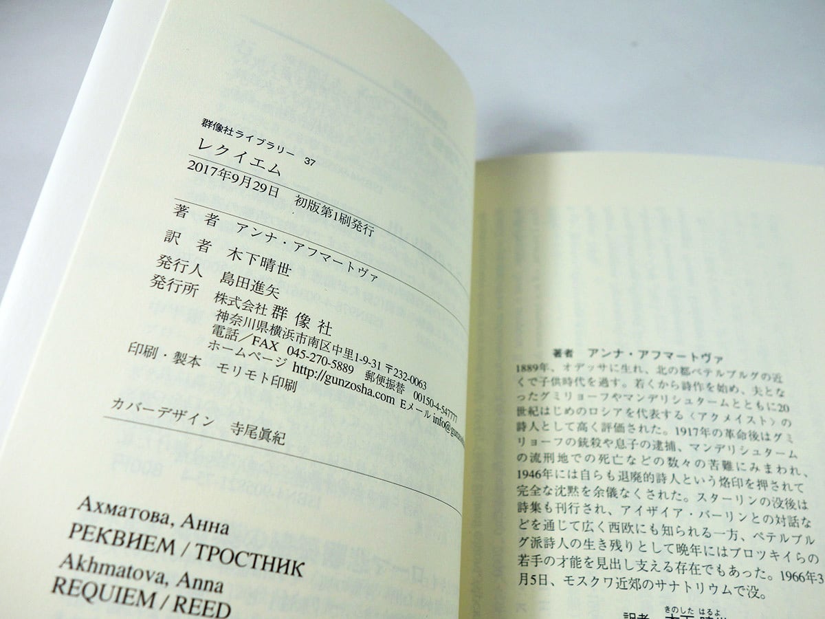 詩集 レクイエム(アンナ・アフマートヴァ 著、木下晴世 訳)