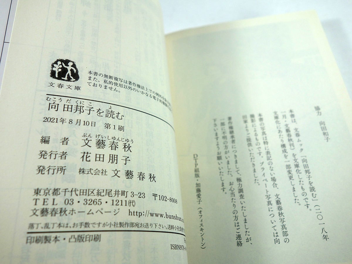 文庫版特別付録として、エッセイ「私が愛する向田邦子」5篇(平松洋子ほか)を掲載。
