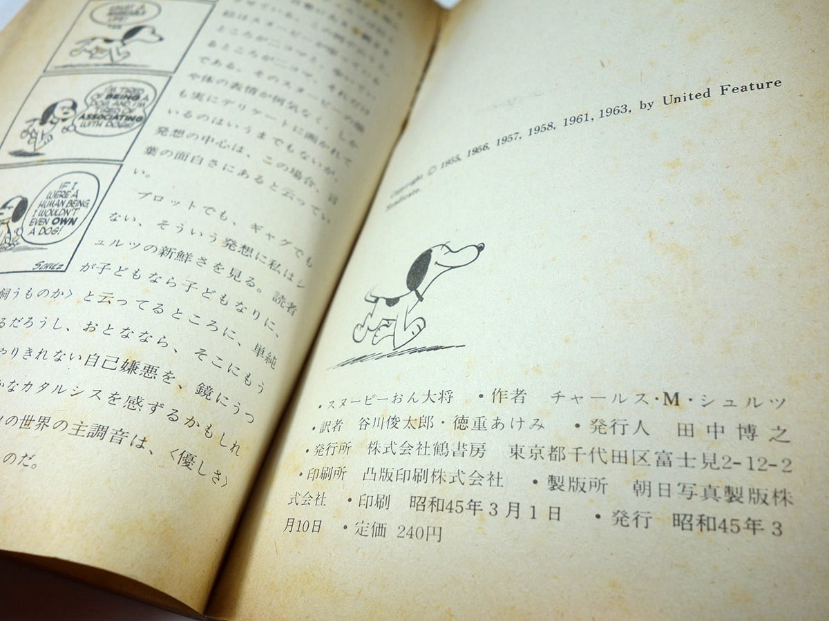 1969年に刊行がはじまり、スヌーピーが日本に広く知られるきっかけとなった、谷川俊太郎訳の「ピーナツ・ブックス」第4巻。
