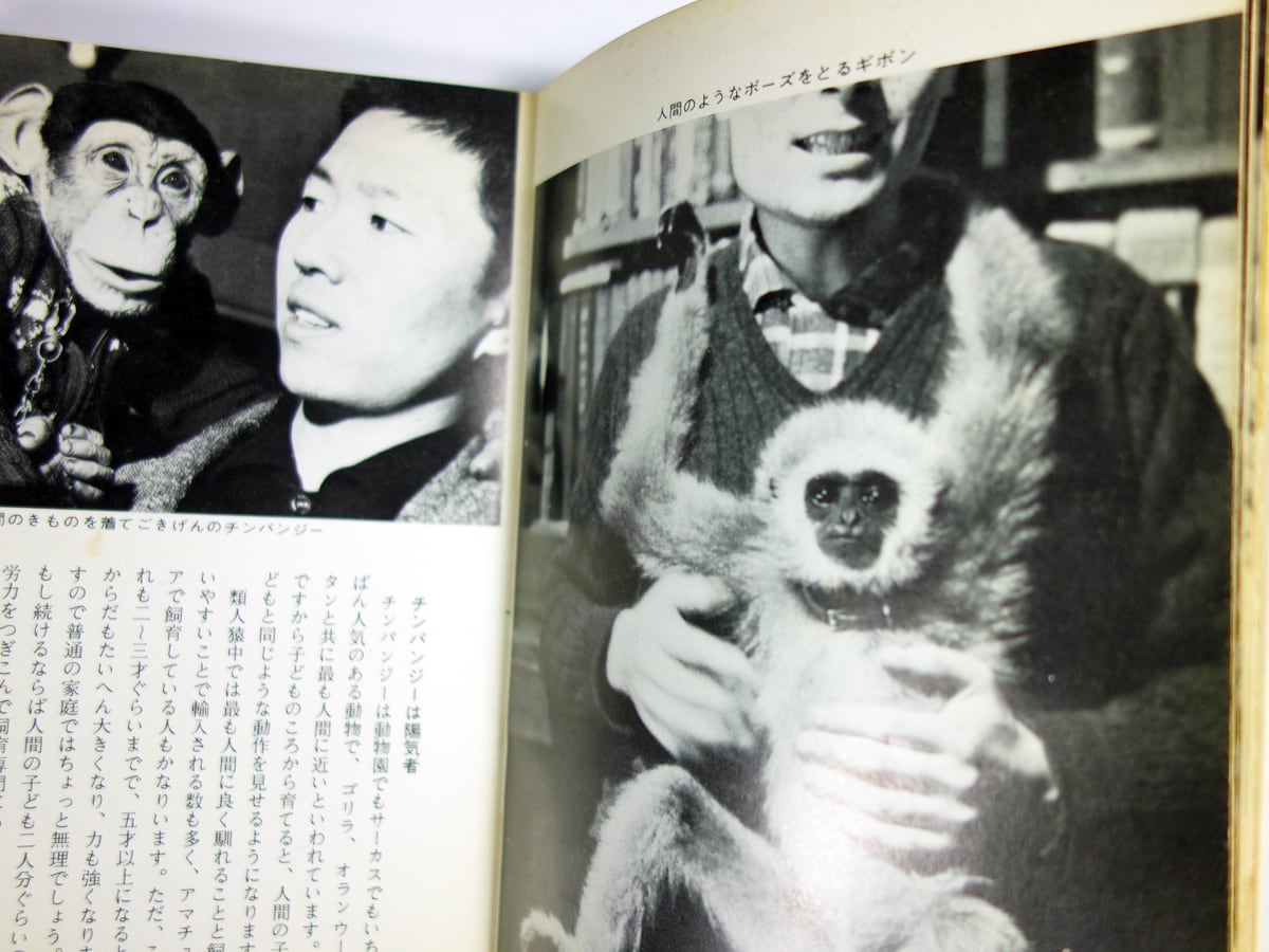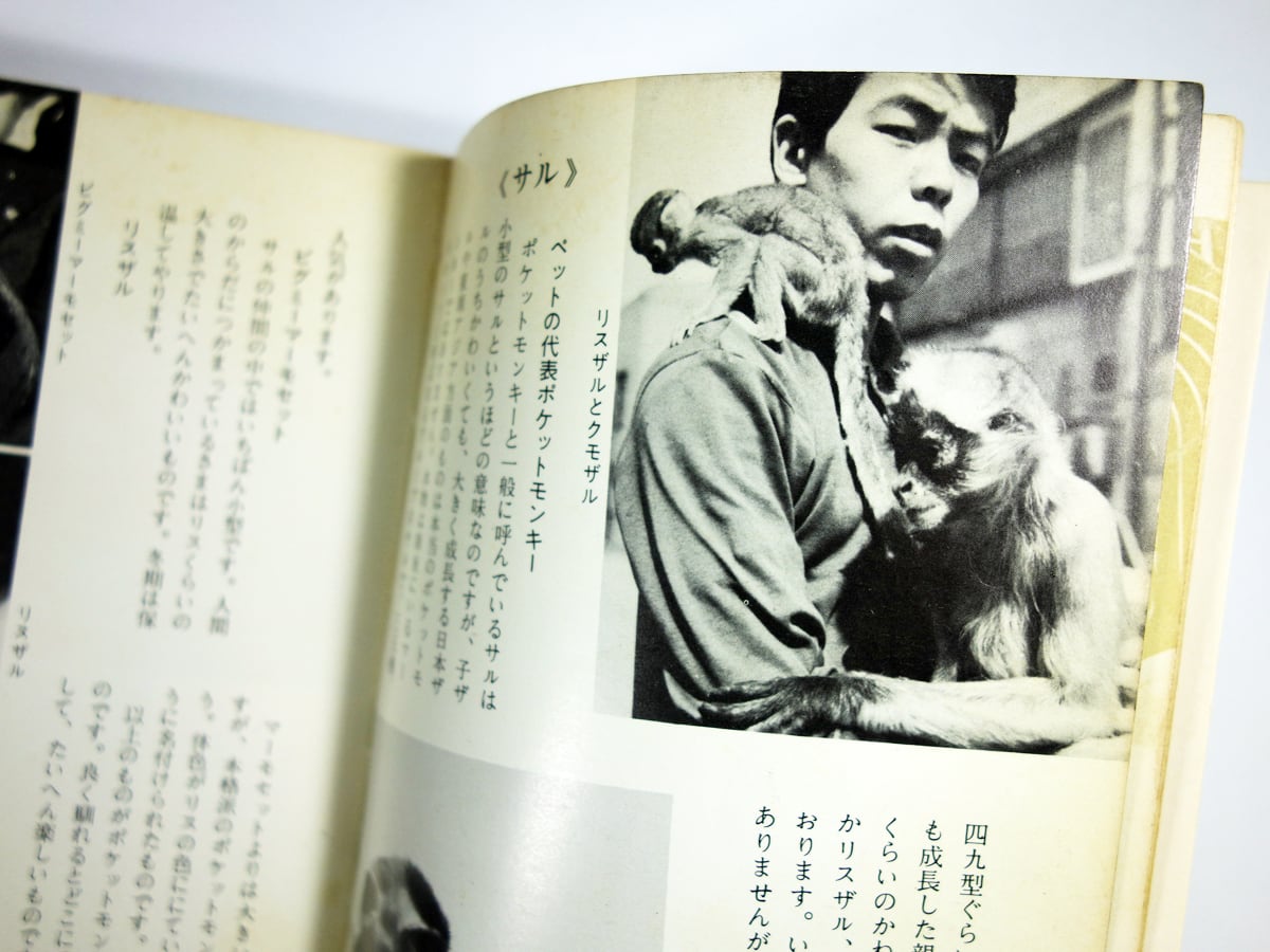 本書は、「ペットの種類と飼い方」をテーマとしているのですが、表紙がサルで、本文でもまずサルのなかま、そして、イヌ・ネコのなかま、ほ乳小動物、鳥のなかま……と続きます。サルを飼うのがブームだったのでしょうか?そういえば、昔、サルを肩にのせて散歩している人をたまに見かけたような気もします。その他、は虫類、熱帯魚、昆虫など、多彩なペットが取り上げられています。