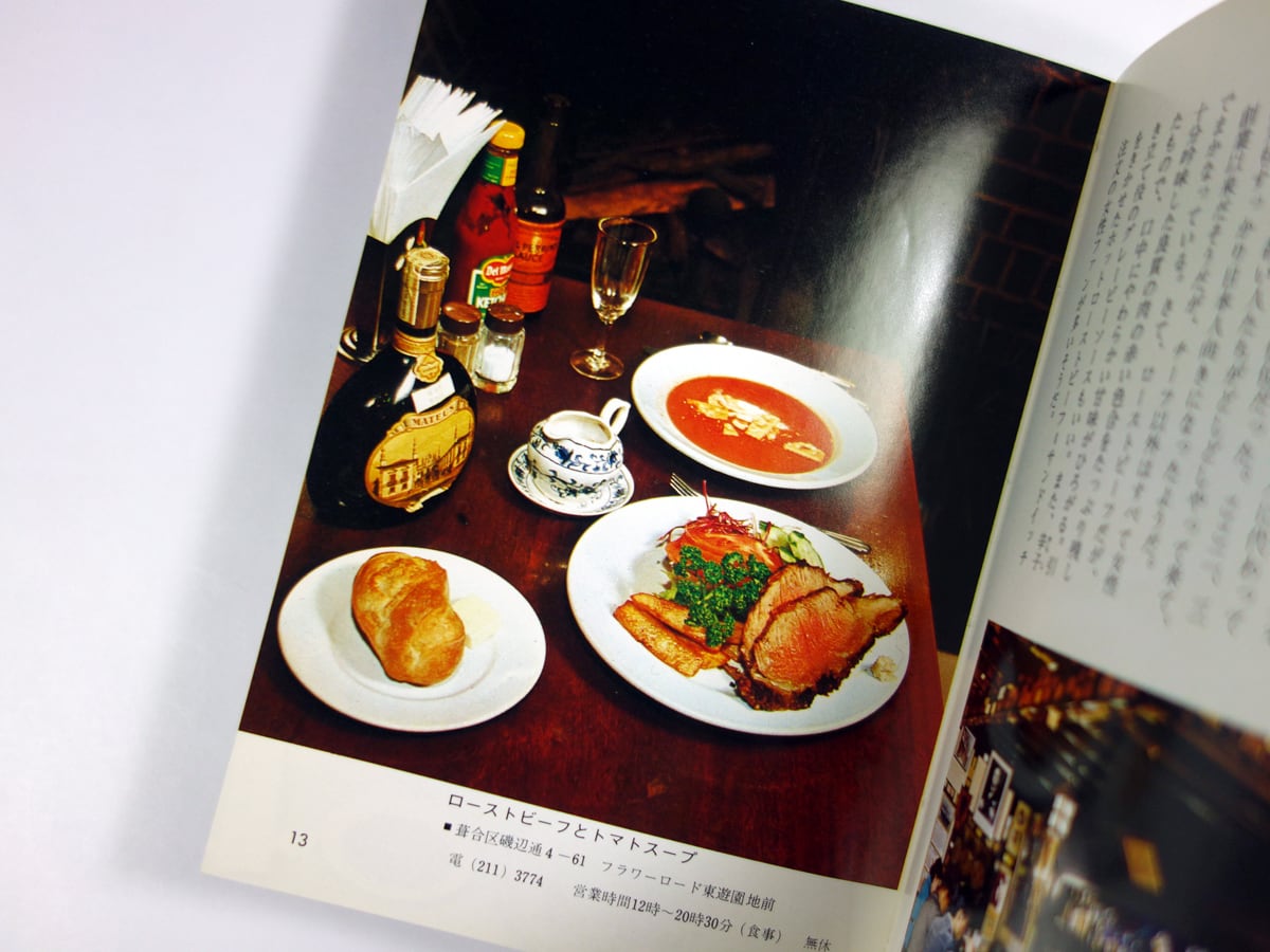 本書は、約40年前の神戸の名店ガイド。姿を消してしまった店が多いのですが、今もなお人々に愛され続けている店も掲載されています。たとえば、写真1枚目の北野クラブ(フランス料理)、3枚目のまめだ(おでん)、4枚目のロッグキャビン(カツサンド)などは、今も健在のようです。この本を手にして、古き良き神戸のグルメスポットを訪ねてみるのも面白いかもしれませんね。