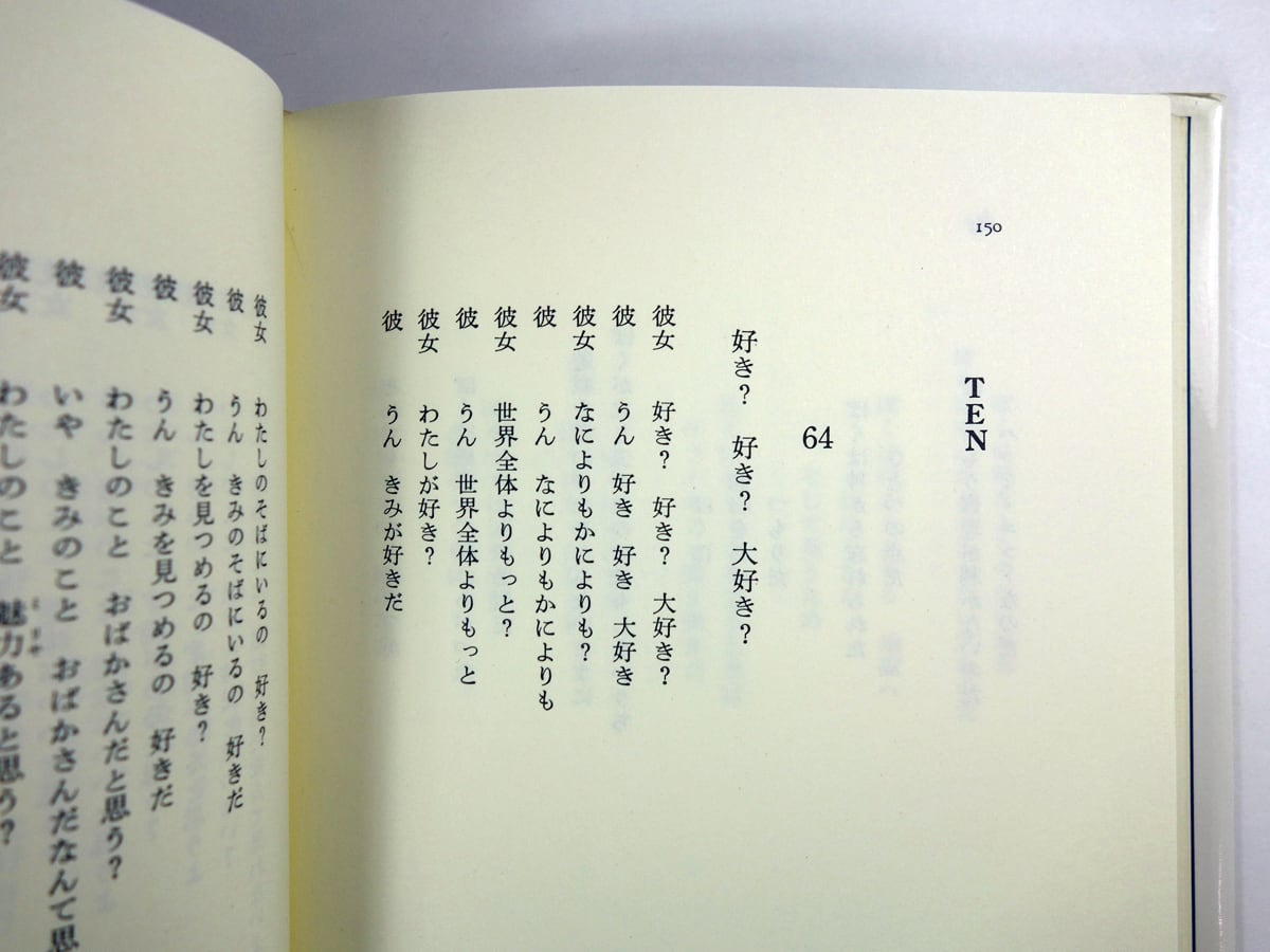 1970年に出版した第1詩集『結ぼれ』は、劇、対話とも取れる独特のスタイルをもち、演劇の台本、映画などにもなりました。本書は、『結ぼれ』のスタイルをさらに深化させたもので、原著は、1976年に刊行されています。