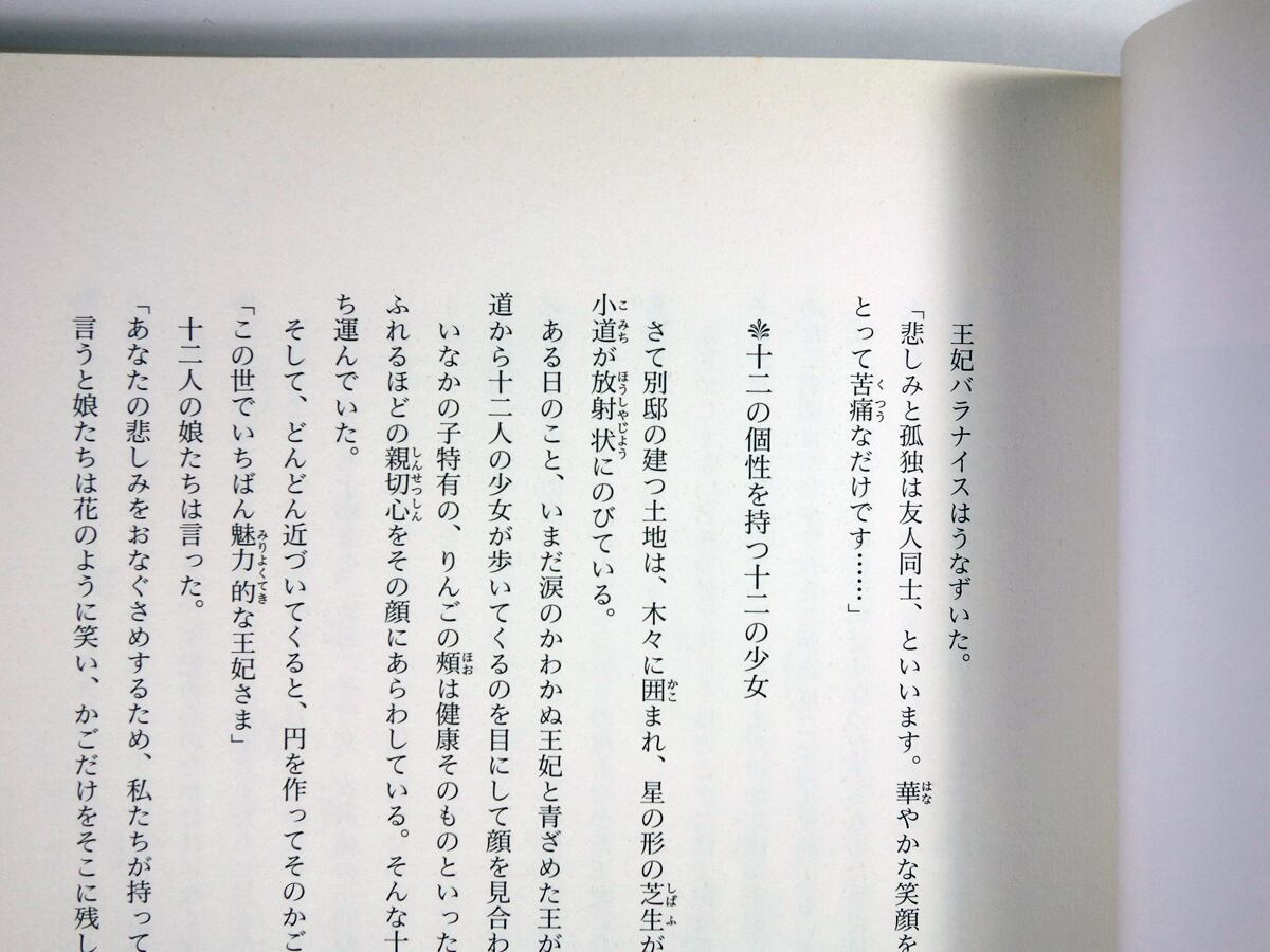 表題作「十二人の踊る姫君」は、夢みる少年マイケルの物語で、ここには、毎夜一足の踊り靴をはきつぶす十二人の遊び好きの姫君たちが現れます。踊り靴の謎を解くため、妖精の力を借りて地下王国に行った少年マイケルが見たものは、真夜中の舞踏会……。(はじめに/岸田理生 より)