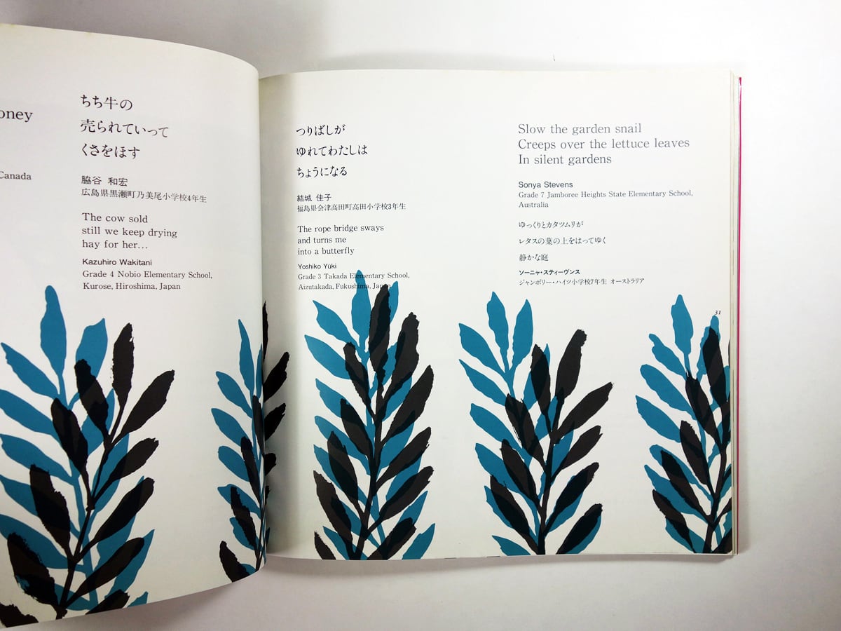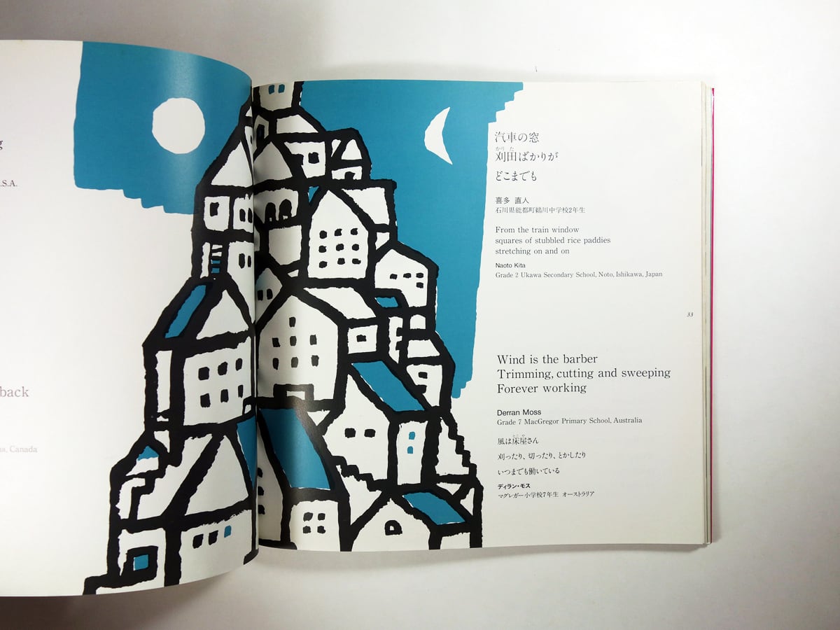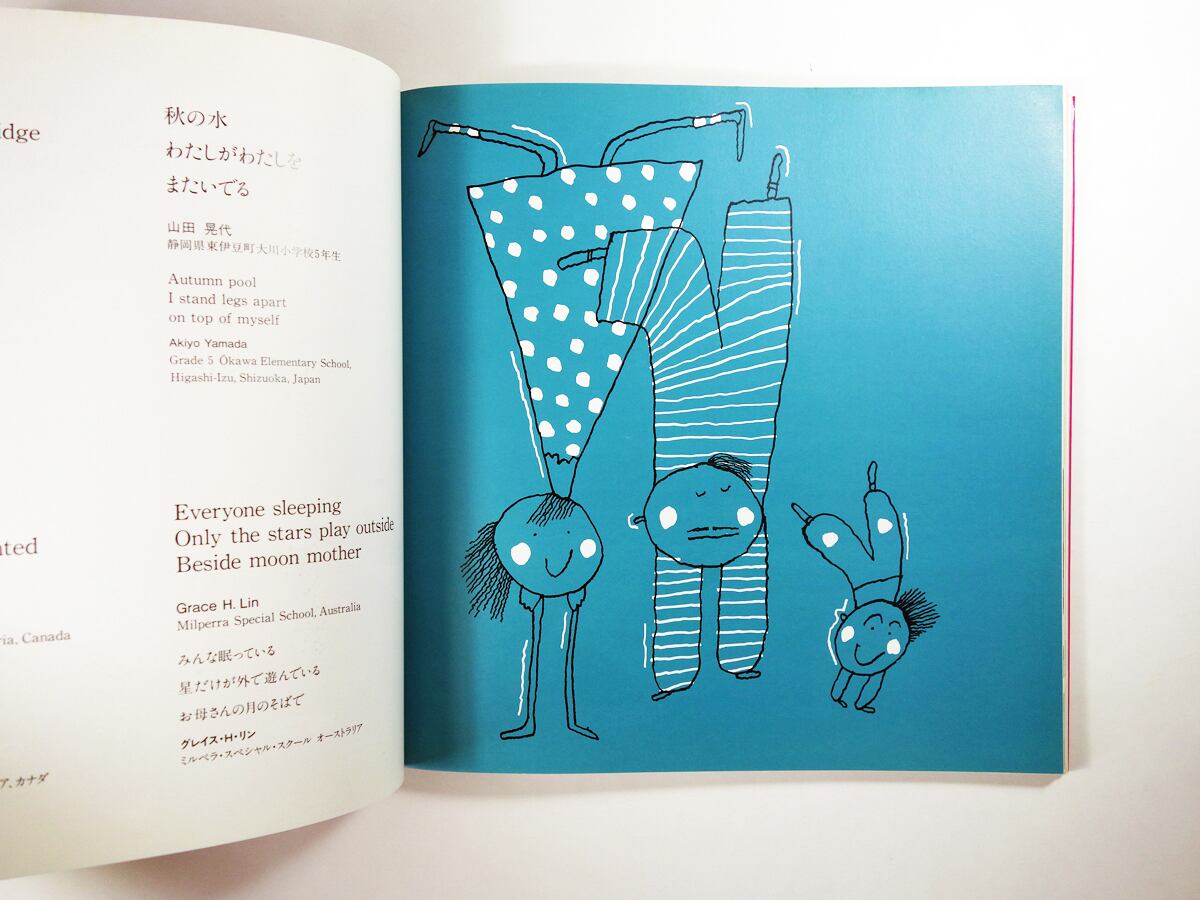 日本の子どもたちの「俳句」と、アメリカ、カナダ、オーストラリアの子どもたちの「HAIKU」を集め、それぞれに英訳・日本語訳をつけた本。五味太郎のイラストが見開き画面いっぱいに広がって、子どもたちの詩とのびやかに響きあっています。良質な絵本としても楽しめる一冊です。