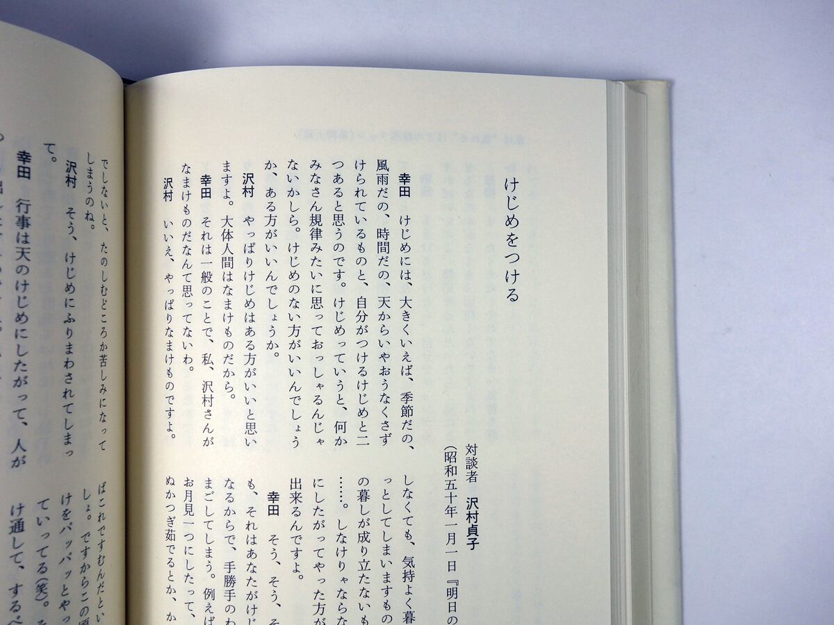 雑誌などに掲載された、幸田文(1904-1990)の対談を編んだ本。小説『流れる』『おとうと』や随筆『木』『崩れ』の名文で知られる幸田文は、対話の名手でもありました。父・露伴のこと、自らの文学のこと、料理のこと、樹のこと、塔との出会いのことなどについて、歯切れよくユーモラスに語っています。
