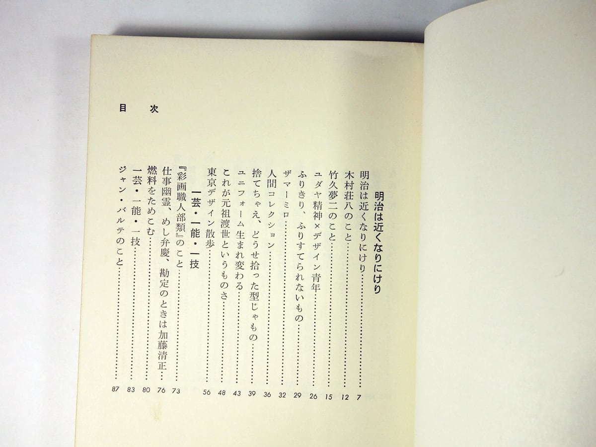 あとがきによると、あっさりとした味わいの前著に比べ、「ぼくの人生論、モード観、職人観の三つをいろいろととりまぜて、すこしこってりとしたやつ」に仕上げたとのこと。江戸っ子らしい歯切れのよい文章で綴られた、木村荘八、竹久夢二の思い出から、「みゆき族」など当時の流行にいたるまで、面白い読み物が満載されています。