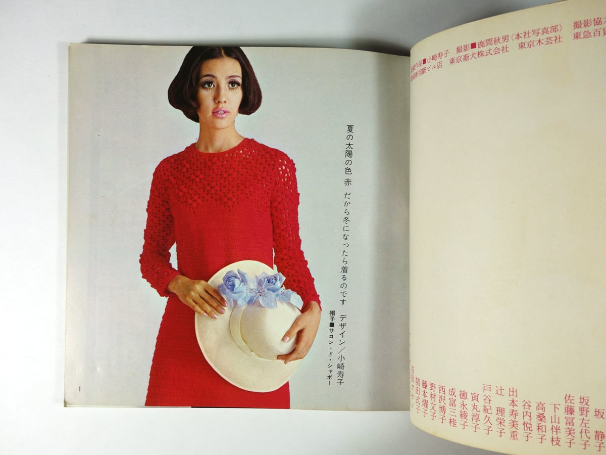 レディースものは、当時流行していたミニ丈ワンピースが多く、ツイギーのようなヘアメイクやアクセサリー使いなど、スタイリングもきまっています。作品ひとつひとつに、しゃれたキャッチフレーズが添えられています。