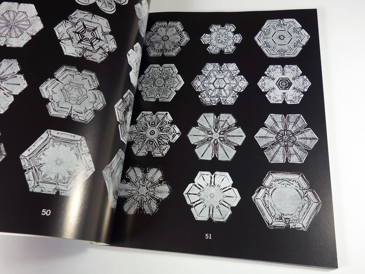 本書は、彼が生涯を通じて撮影した5000枚以上の写真の中から、約2500枚を選んで編まれた「雪の結晶写真集」。原著は米国気象学会会長のウィリアム・ハンフリースの尽力によって、ベントレーが亡くなる直前の1931年に出版されています。本書は、原著を元に、できる限り忠実に復刻されたペーパーバックです。