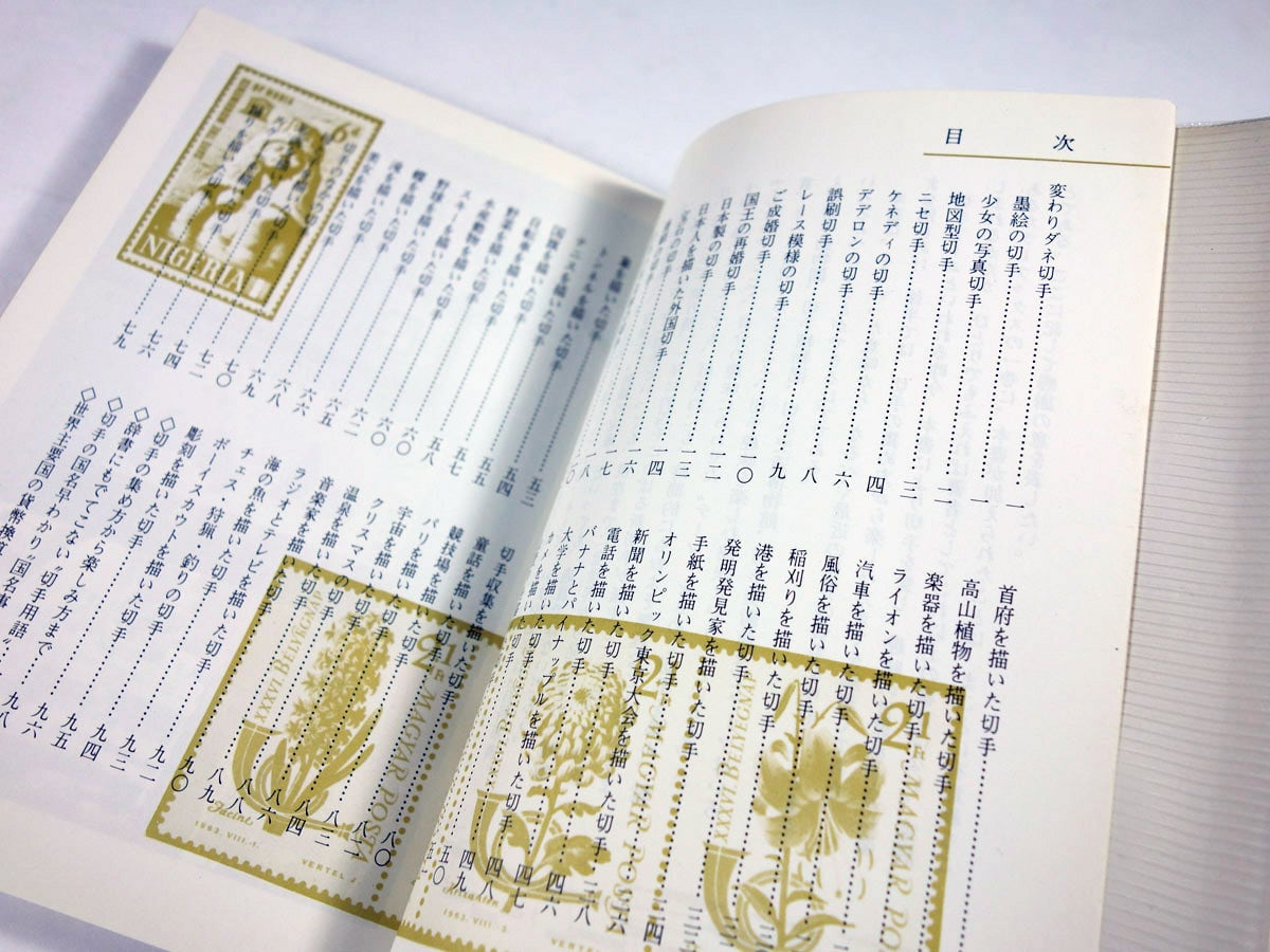 「レース模様」「宇宙」「楽器」「風俗」「蝶」「美術品」など、70以上の多種多様なテーマごとにまとめられた切手図鑑。初版刊行時は東京オリンピックを間近に控えた頃で、世界各国で発行された「オリンピック東京大会を描いた切手」が多数掲載されています。