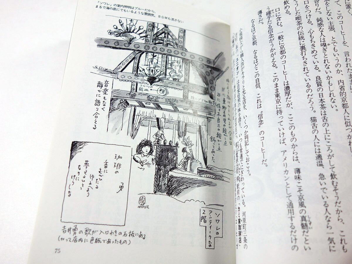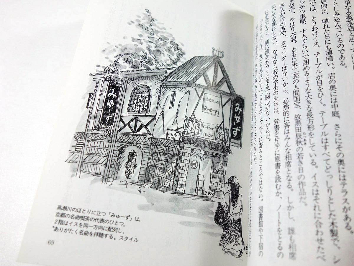 80年代刊行のビジュアル文庫なので、今はもう幻となった味もあり、健在な名店もあり…。個人的には、高瀬川のほとりにあった名曲喫茶「みゅーず」の外観イラストが懐かしいです。
