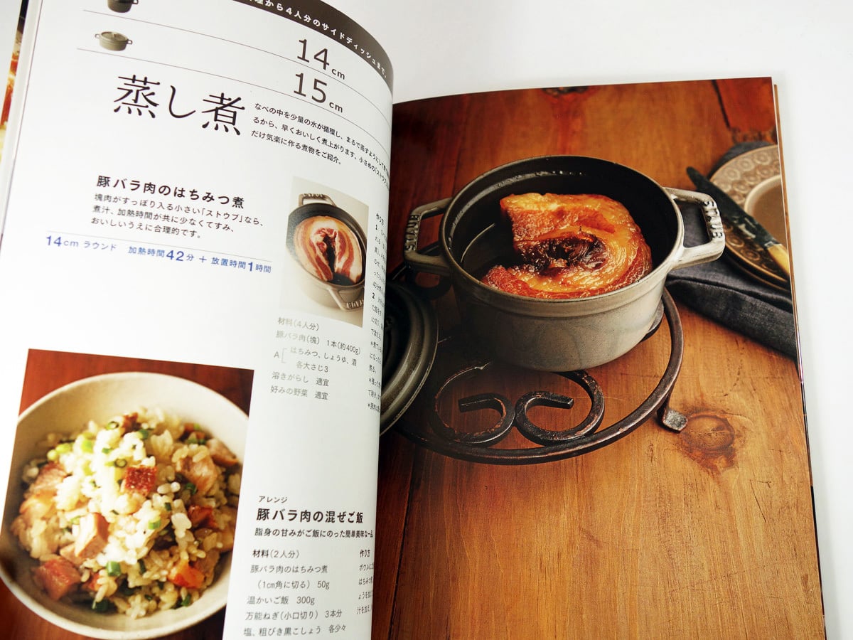 フランス製のほうろう鋳物なべ「ストウブ」のうち、小さめの3タイプを使った料理を多数紹介している本。