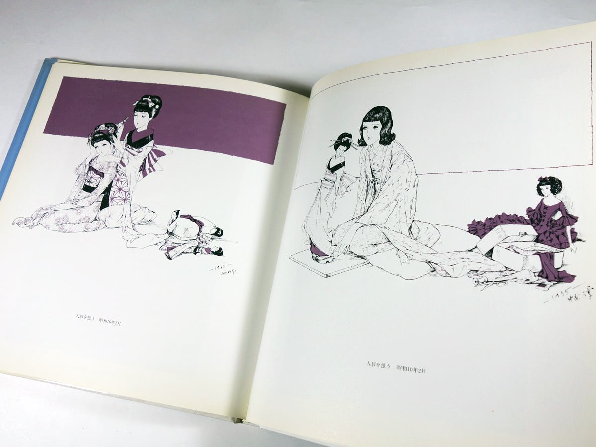 雑誌「少女の友」昭和8年3月号より昭和12年11月号に掲載された、中原淳一の口絵・挿画より損傷なく現存しているカラー口絵すべて(47点)と、2色および1色挿絵より抜粋32点を当時のままに再現、一冊にまとめたもの。