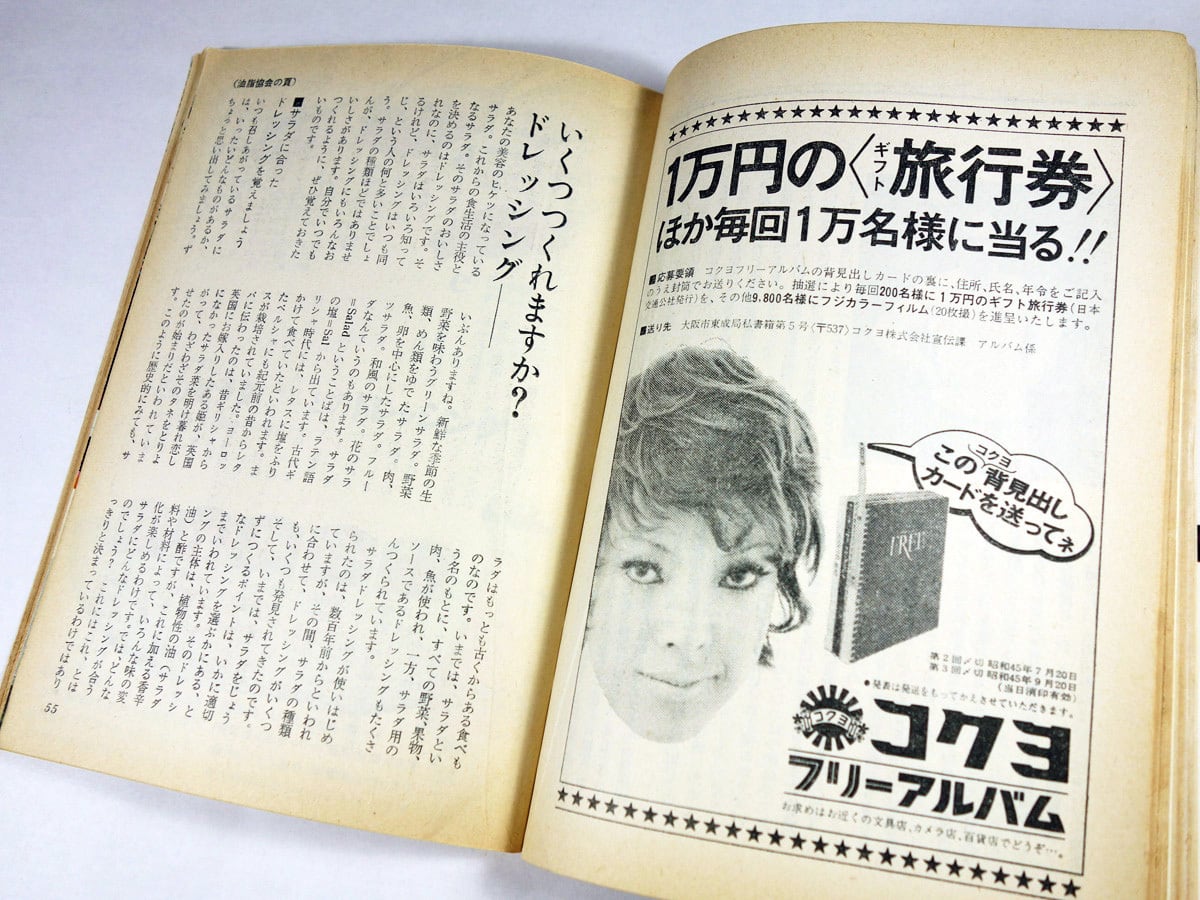 B6サイズの「食と暮らし」の情報誌。カラー版の「料理カード レシピ」とセットで、月刊の頒布形式で販売されました。1958年に創刊。国内で一時期トップを争うほどの発行部数となり、70年代以降はボリューム・内容ともさらに充実。80年代まで続く息の長い雑誌となりました。