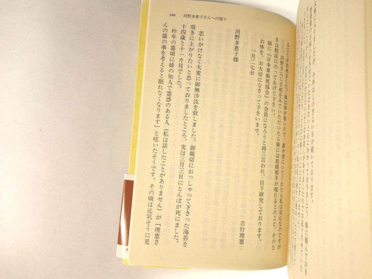 雲、蜻蛉、猫の名前である。「蜻蛉はすこし離れた場所に座り、邪気のない目でそっと見ていた。薄い緑に茶の線が交差した蜻蛉の翅のような目差しだった。彼女は部屋の中の一番静かな場所で息を引き取った。干潮の刻だった」と微妙な独特の距離感で猫を映し出す。(カバー裏紹介文より)