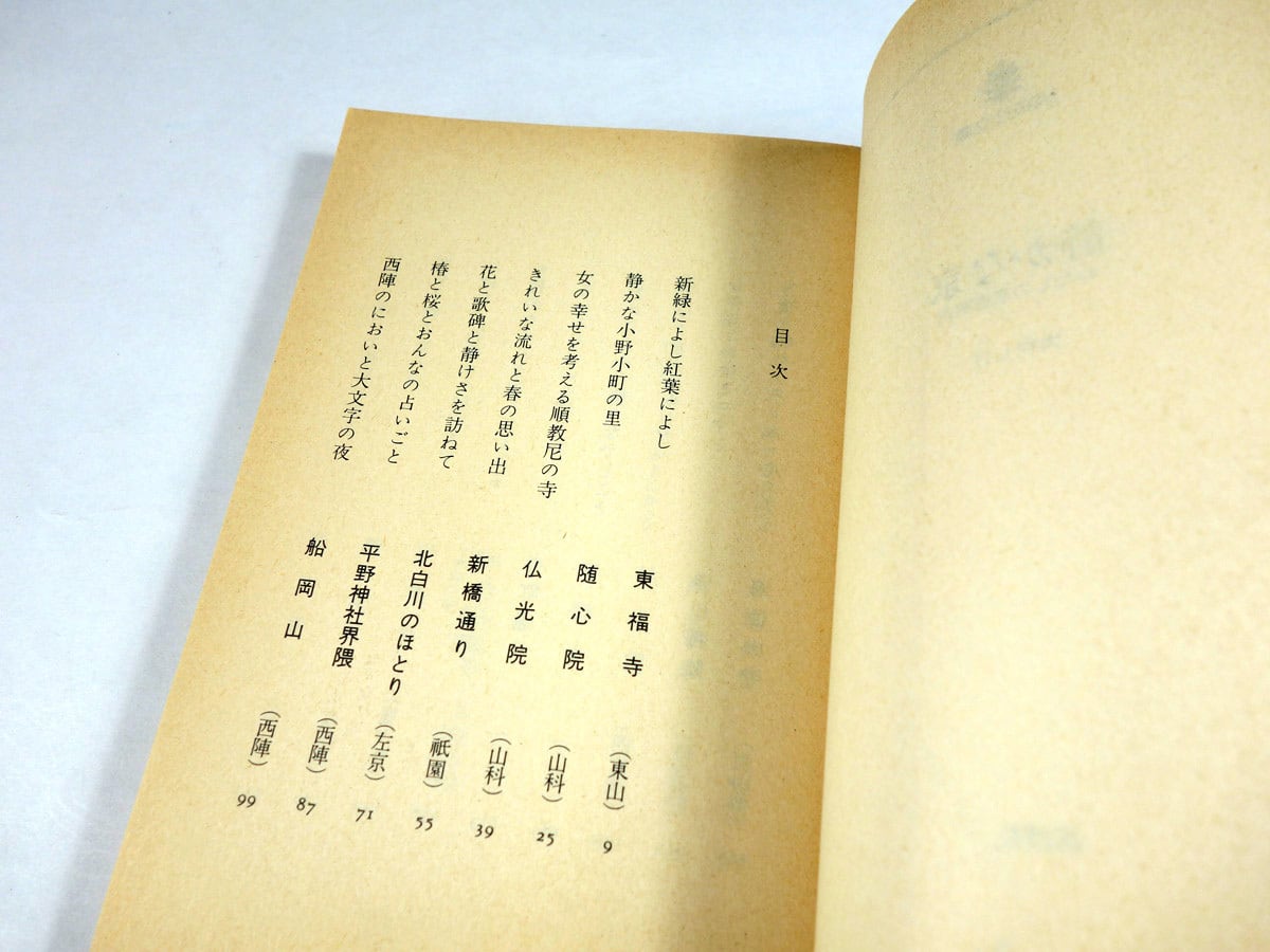 東福寺 / 随心院 / 仏光院 / 新橋通り / 北白川のほとり / 平野神社界隈 / 船岡山 / 清水寺 / 鴨の河原 / 安楽寺 / 洗い地蔵 / 寺町通り / 宝鏡寺 / 神光院 / 赤山禅院 / 海住山寺 / 水尾の里 / 泉涌寺 / ないしょのお話 ー あとがきにかえて