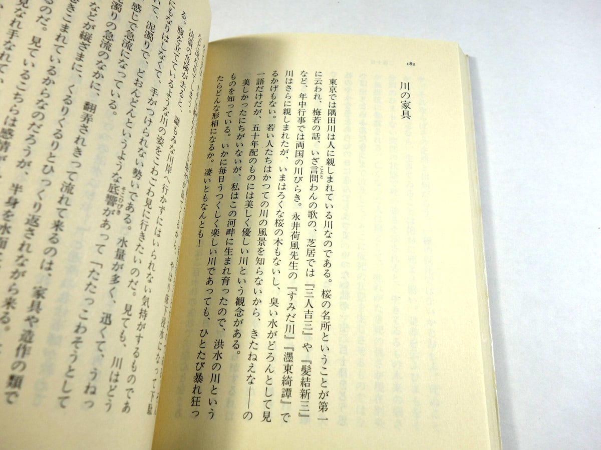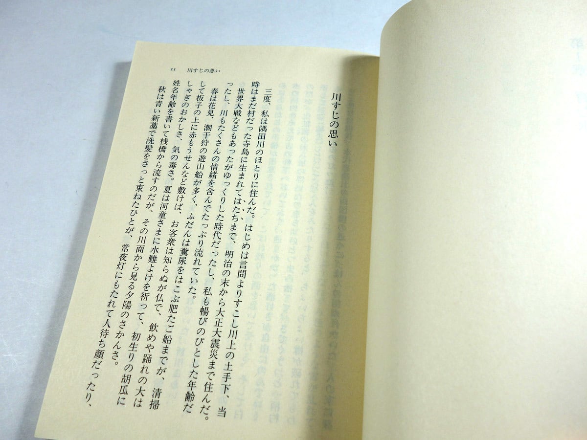 川べりに三度も住んだが、改めて思えば私は、川のことを殆ど知ってはいない。ただ、川の水はからだの芯へしみこんでいるようだ。だから、あんなに汚れて臭くても、私はあの川をいとしく思う。
