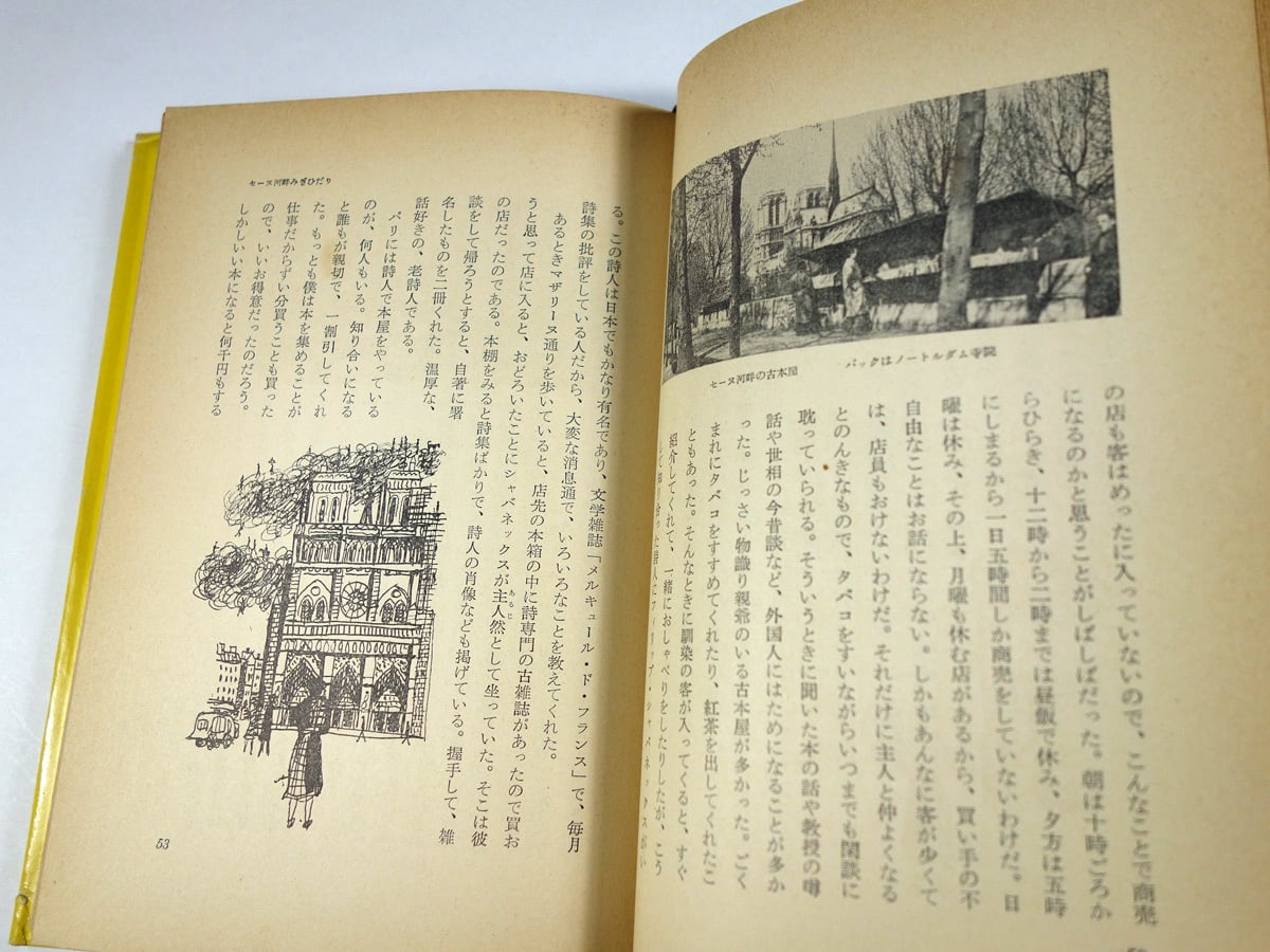 パリには詩人で本屋をやっているのが、何人もいる。知り合いになると誰もが親切で、一割引してくれた。もっとも僕が本を集めることが仕事だからずい分買うことも買ったので、いいお得意だったのだろう。(「セーヌ河畔みぎひだり」より抜粋)