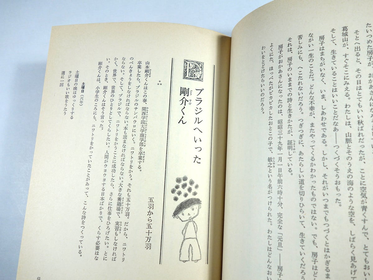 山本剛介くんはこの春、関西学院大学商学部を卒業する。卒業したら、ブラジルのサンパウロにいく。ニワトリを飼う。それも五十万羽。だから、ニワトリのべんきょうをしなければならない。(略)