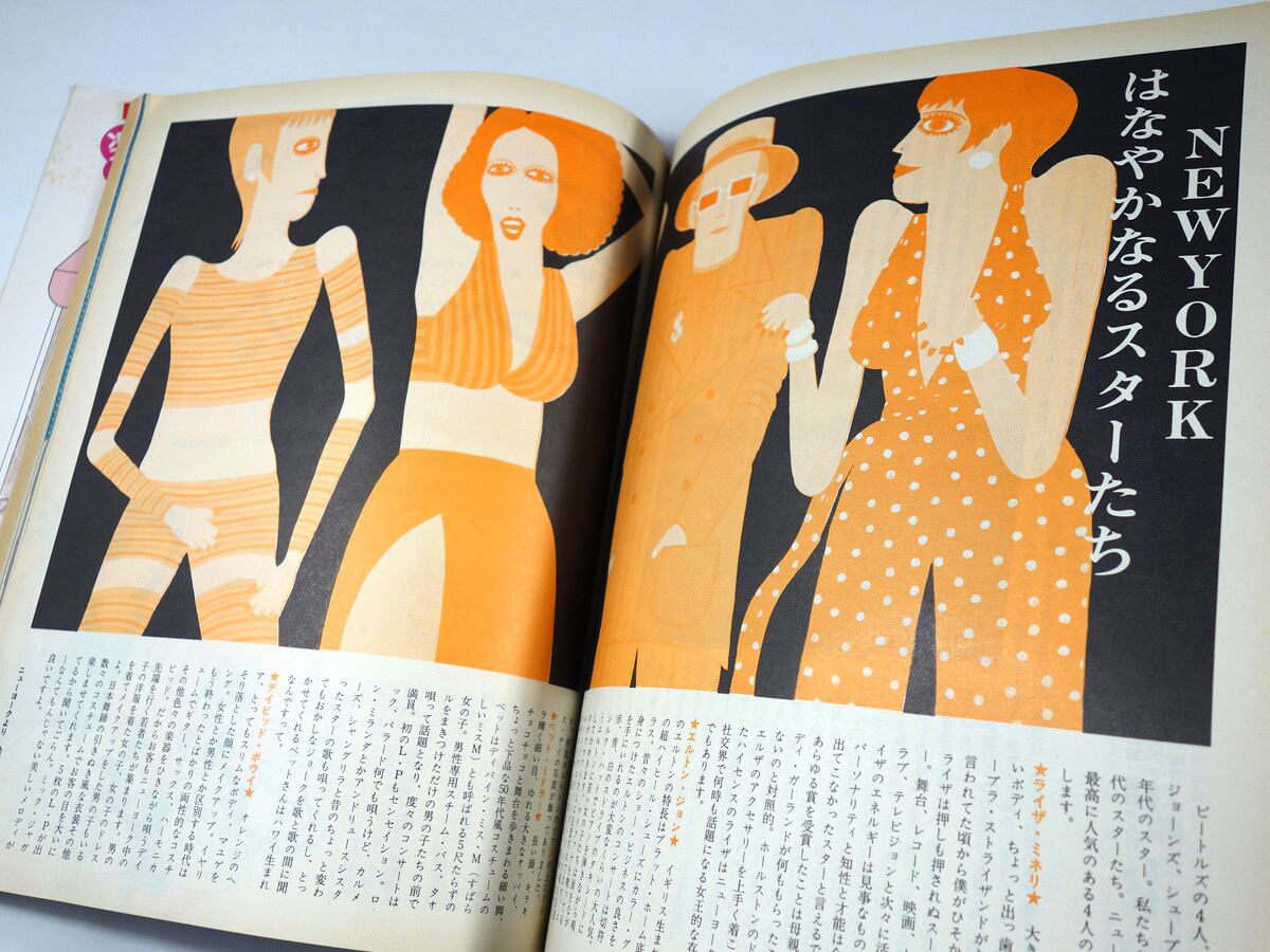 原宿ミルク、芦田淳、鳥居ユキなど、当時の人気ブティック、デザイナーをフィーチャー。スタイリングも刺激的で、すみずみまでセンスのよさを感じる誌面づくりが光る。