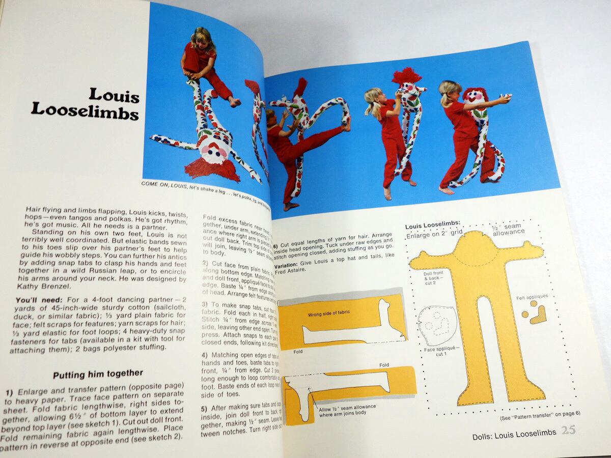 布、フェルト、毛糸、発泡スチロール、ポリエステル綿などの素材を使った人形、ぬいぐるみ、モビールなどの手作りおもちゃガイドブック。テキスト英語。