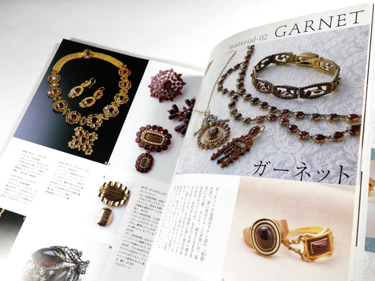 ダイヤモンド、ガーネット、コーラル、パール、ゴールドなどの「素材」、十字架、蝶、蛇、蜥蜴、月、星などの「モチーフ」別に編集し、価値あるアンティークジュエリーの逸品のカラー写真を多数掲載。その奥深く、豊かな世界に驚かされる。