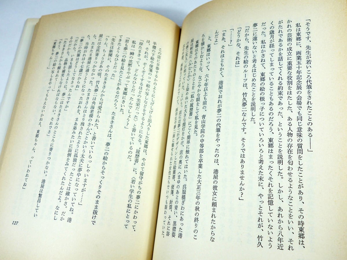 竹久夢二に私淑した若き日の東郷青児が、夢二の愛した岸たまきと抜き差しならぬ仲となり、関係性を破綻に至らしめたエピソードなどをたぐりよせ、その内面の謎へと分け入って行く。