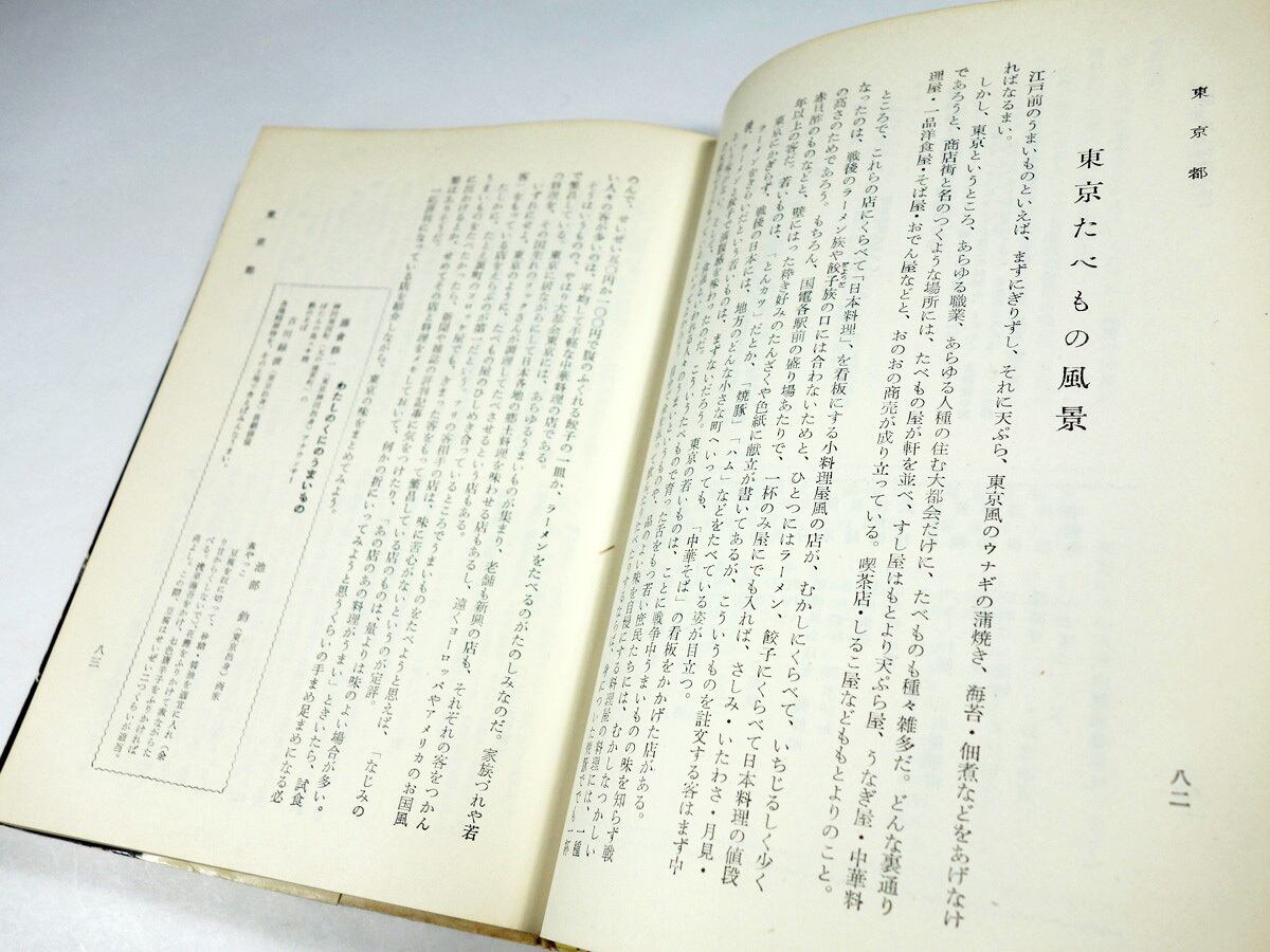 昭和31年に、JTBの前身である日本交通公社が刊行した、全都道府県のうまいものガイド。日本津々浦々の名産品が、ひねりのきいた文章で紹介されており、すみずみまで楽しく読むことができる。