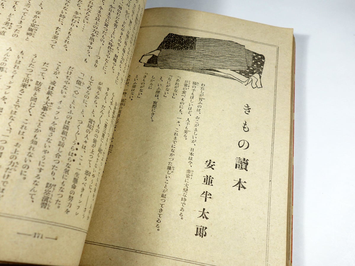 なお、後半に掲載されている記事「きもの讀本」の執筆者・安並半太郎は、花森安治のペンネームであるとのこと。
