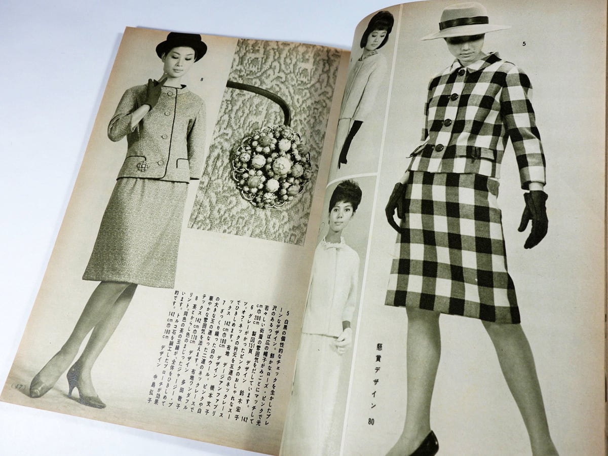 この頃は、スーツやワンピースに、ブローチや帽子、手袋が合わせられ、きちんとした印象があります。「シャレード」のオードリーのような七分袖でコンパクトなジャケットは、衿のデザインのバリエーションも豊富で、今の目で見てもとてもおしゃれ。後半に、仕立て方が掲載されています。
