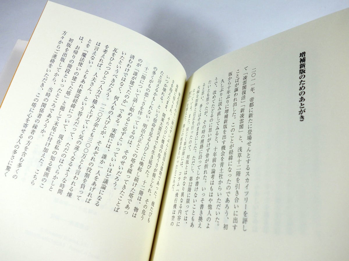 レンガ造り十階の上に二階の木造展望台を有し、関東大震災で崩壊した「浅草凌雲閣」に関する論考。雑誌『ユリイカ』での連載をもとに2001年に刊行された単行本の増補新版。