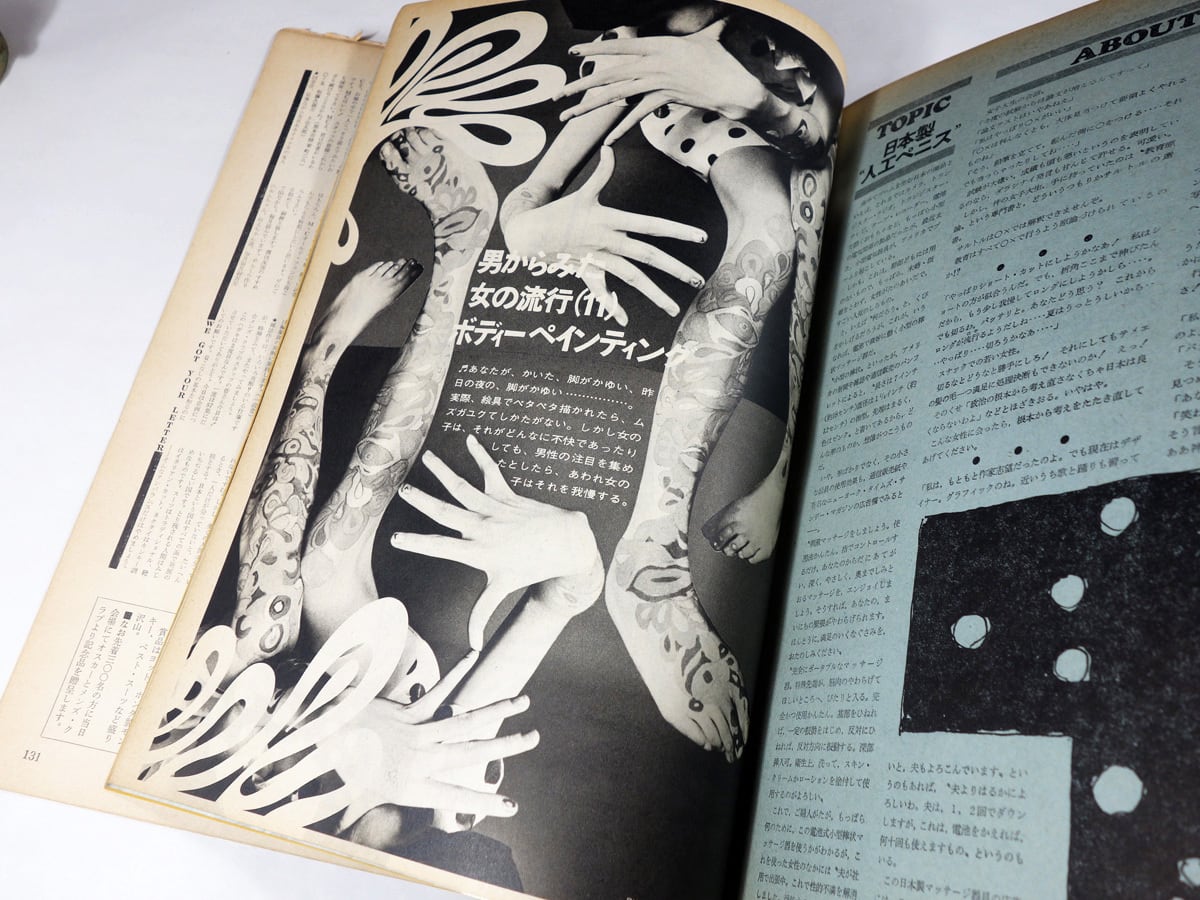 「男から見た女の流行/ボディ・ペインティング」、「ファッション・ハプニング・コンテンスト」、横尾忠則のイラストページ「ぬり絵をしよう」など、この時代のメンズ・クラブはトラッド一辺倒ではなく、サイケデリックムーブメントの波も流れ込んでいる。