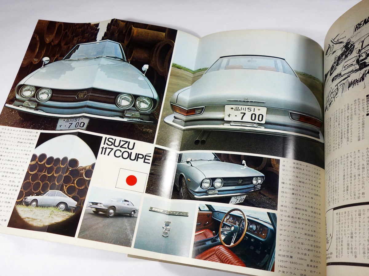 小林泰彦が個性的な働く男たちをスケッチした「アメリカの職業的風俗」、ジウジアーロがデザインした名車「いすゞ117クーペ」のグラビアなど、見ごたえのある記事を満載。