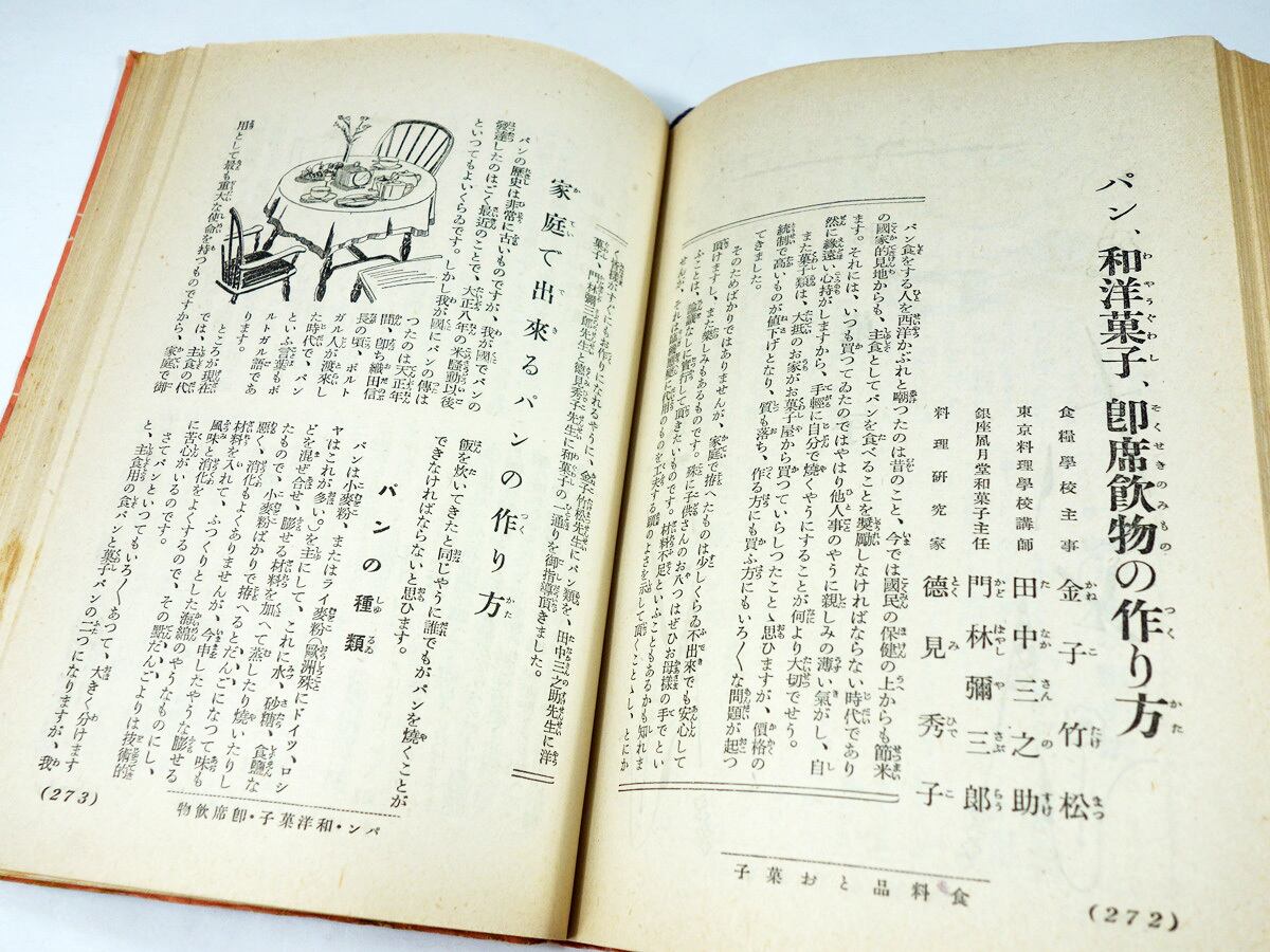 本書のテーマは、「食料品とお菓子」。戦時下の備えとして「貯蔵食」や「代用食」の作り方に多くのページが割かれているが、まだ深刻な食糧難には至っていない頃で、四季折々のさまざまな食の楽しみ方が紹介されている。