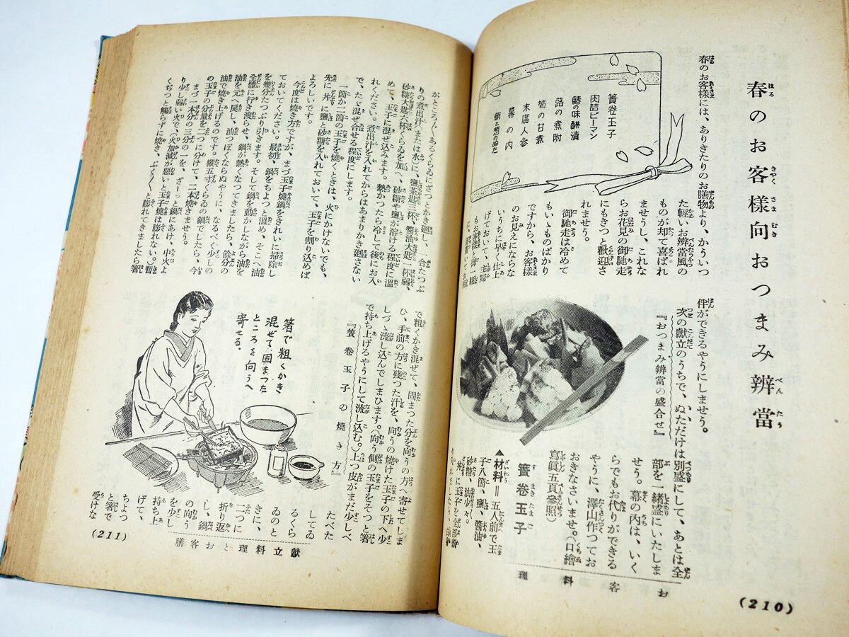 本編は1色刷だが、巻頭グラビアにはカラーページもあり、品の良く盛り付けられた客膳料理の数々が掲載されている。