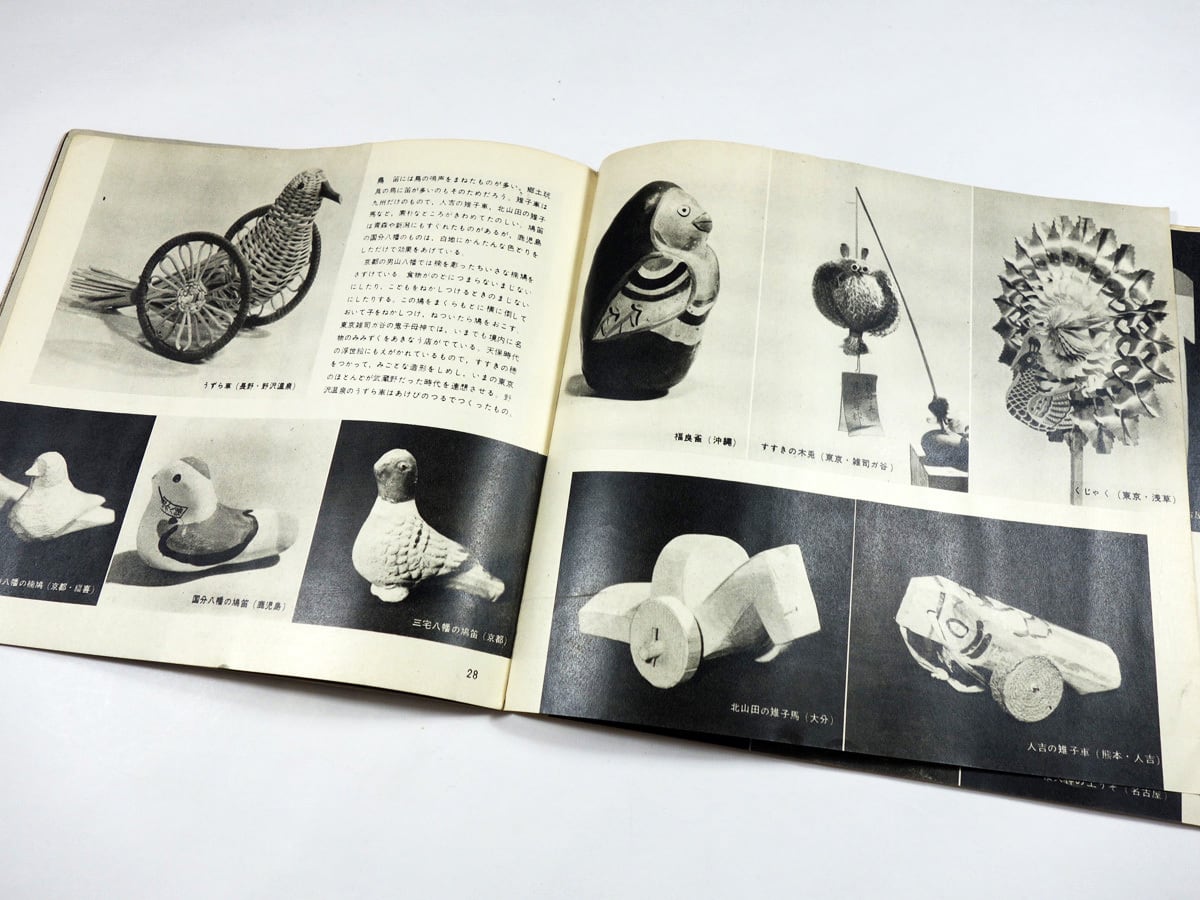 こけしをはじめとする、全国各地の郷土玩具をアイテム別にモノクロ写真で紹介。巻頭に「こけしの生まれ故郷」と題して、秋田県木地山の取材記事が掲載されている。監修は、郷土玩具研究家の森山太郎。