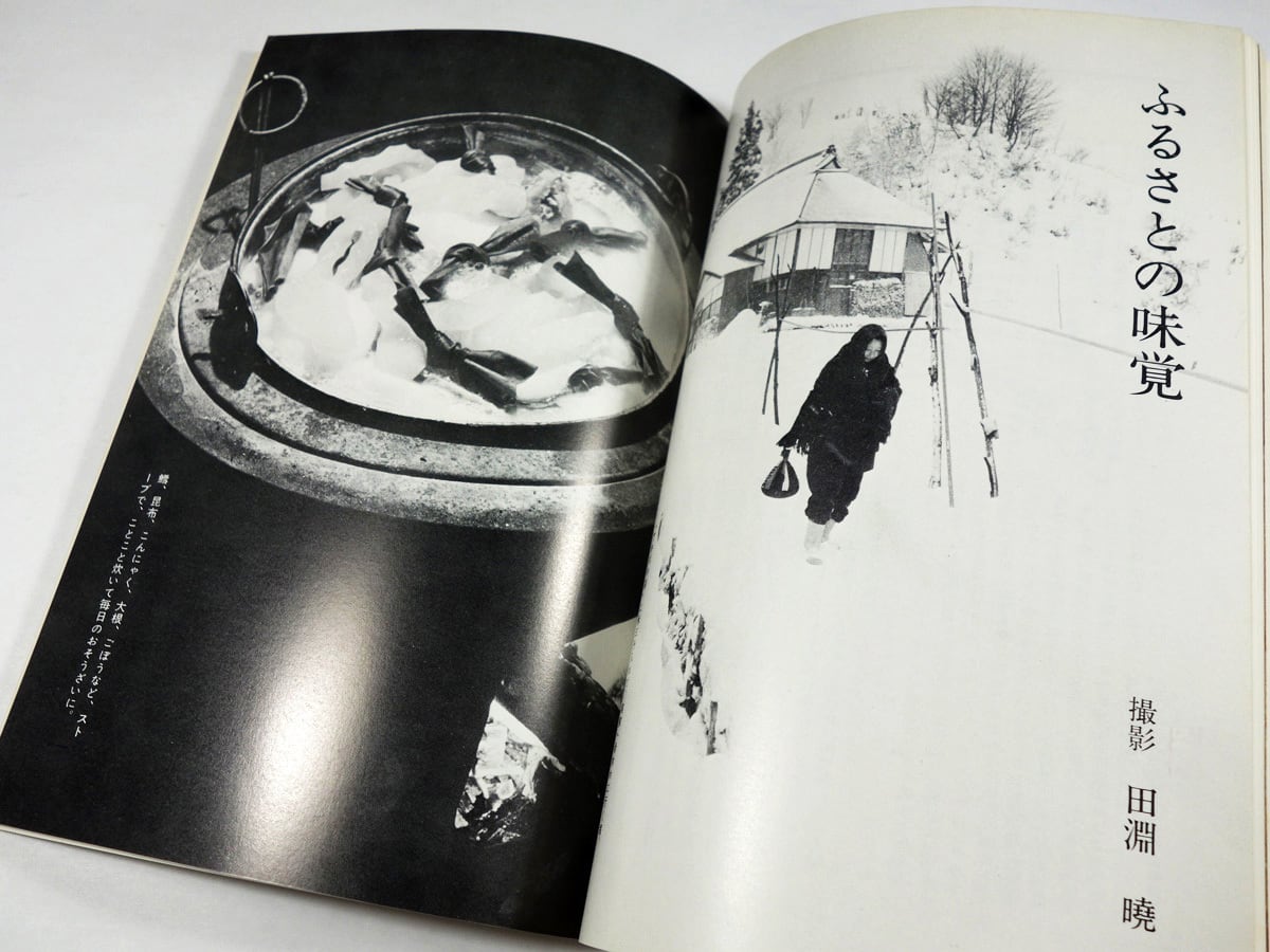 特集・ふるさとの味覚。雑誌『銀花』初代編集長の細井冨貴子が、奥会津の山里を取材し、食べることのよろこびについて考察している。