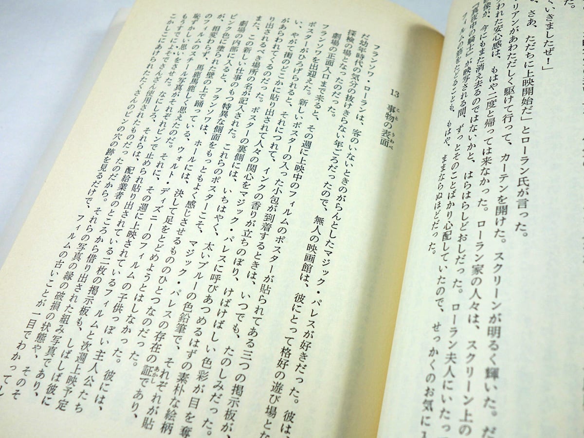 フランスの小都市にある場末の映画館「マジック・パレス座」を舞台とした長篇小説。映画『ニュー・シネマ・パラダイス』を彷彿とさせる筋立てで、人生の哀感が胸に迫る。
