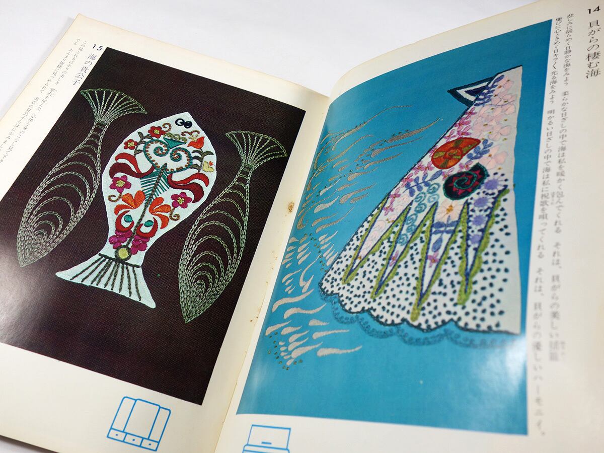 33の創作刺繍モチーフに詩的な文章が添えられ、詩画集のように編集された図案集。いくつかの作品は実用作例となっているが、ほとんどがモチーフの部分をひとつの絵として見せている。