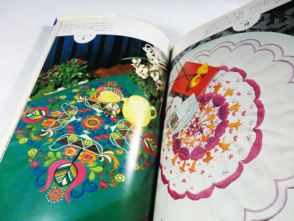 多彩な刺繍の技法をいかして絵を描くように作り出されたモチーフを、テーブルクロス、クッション、ランチョンマット、ドイリー、小物敷き、エプロン、ブラウス、バッグなどに展開した50の作例を紹介。