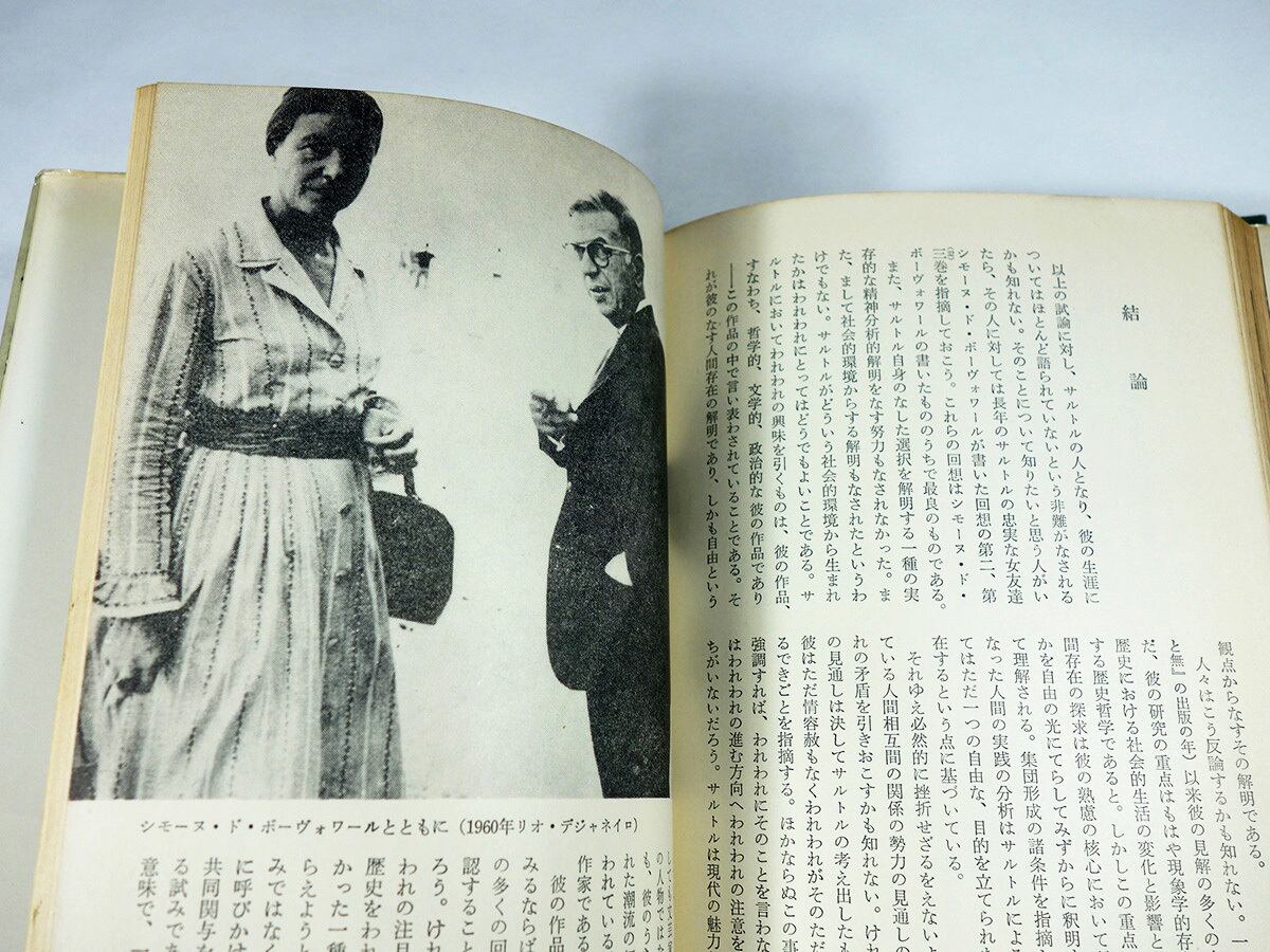 パリのブルジョワ知識人階級に生まれ育った幼少期からのポートレート、主著『存在と無』の手稿、戯曲『出口なし』『悪魔と神』などの舞台写真、盟友シモーヌ・ド・ボーヴォワールとの写真など、モノクロ図版を多数収録。