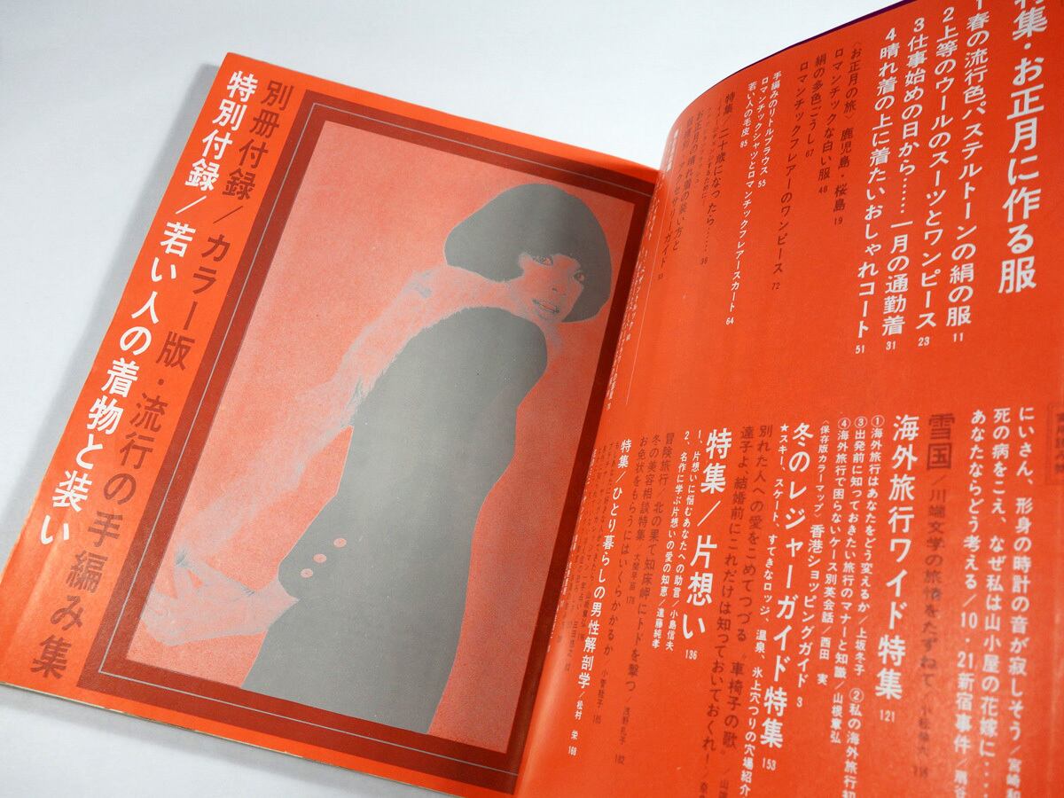 おしゃれ、海外旅行、インテリアなどの華やかな情報を満載するなか、1968年10月21日の新左翼暴動事件「新宿騒乱」を取り上げるなど、「政治の季節」の空気も感じられる。