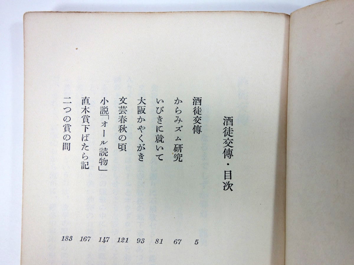 表題作「酒徒交傳」は『文藝春秋』に連載された随筆で、中原中也、大岡昇平、井伏鱒二、久保田万太郎、上林暁、湯川秀樹、小林秀雄、林芙美子など、二癖も三癖もある「酒徒」たちが登場する。