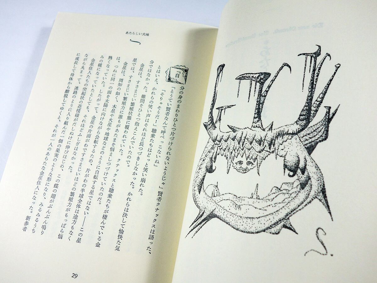 奇想天外な生き物、神々、怪物たちが跳梁跋扈する、未知なる星々の世界に想いをはせ、独特のユーモアを感じさせる筆致で星界のユートピアを描き出している。シュールなイラストレーションも、作家自身によるもの。