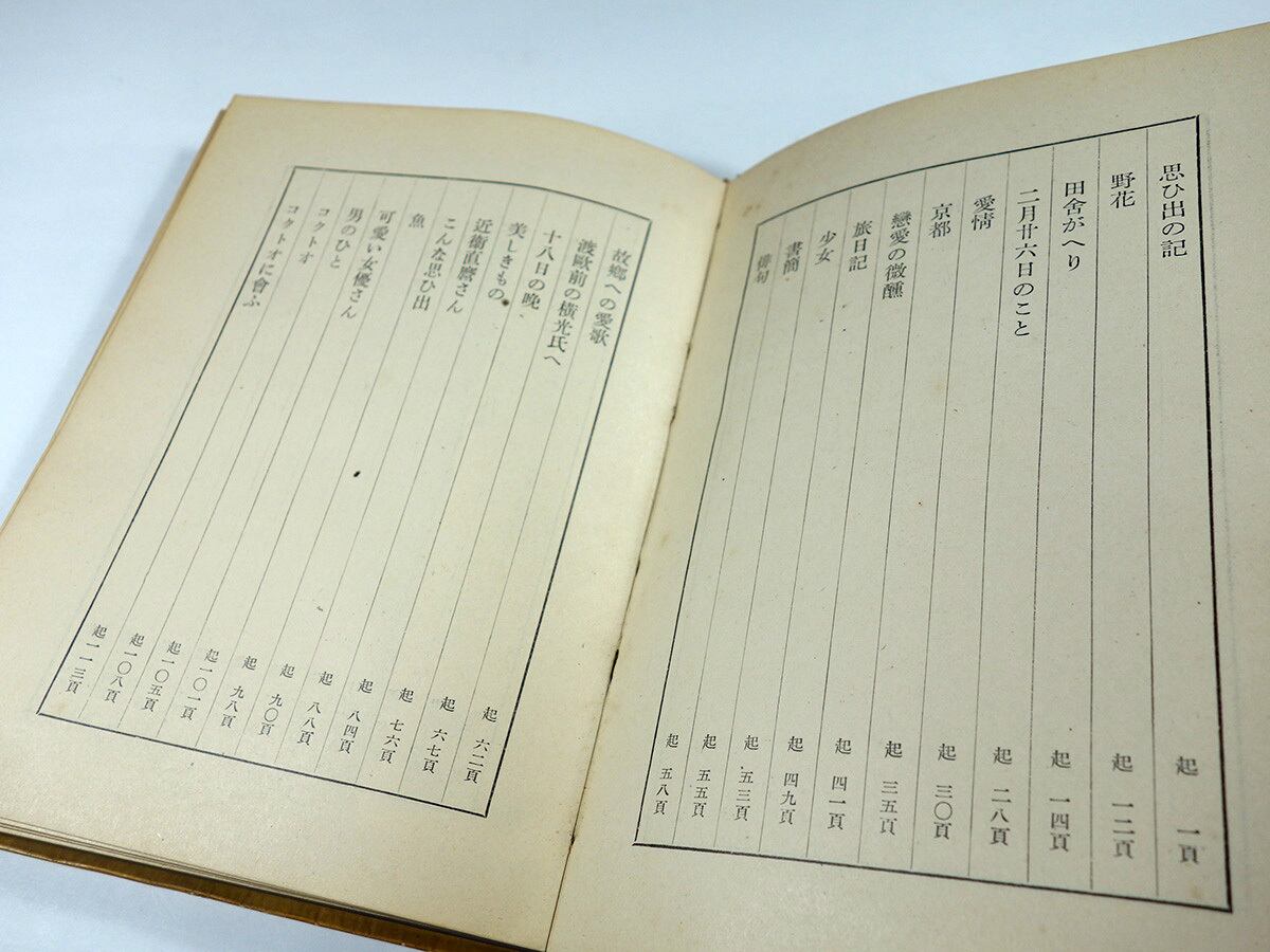 講演旅行の際に故郷尾道に立ち寄った際の懐旧の想いを書きとめた表題作「田舎がへり」、昭和11年に世界一周旅行の途上で日本に立ち寄ったジャン・コクトーとの邂逅を綴る「コクトオに會ふ」、筆の冴えを感じさせる身辺雑記「美しきもの」「少女」など、38編を収録。