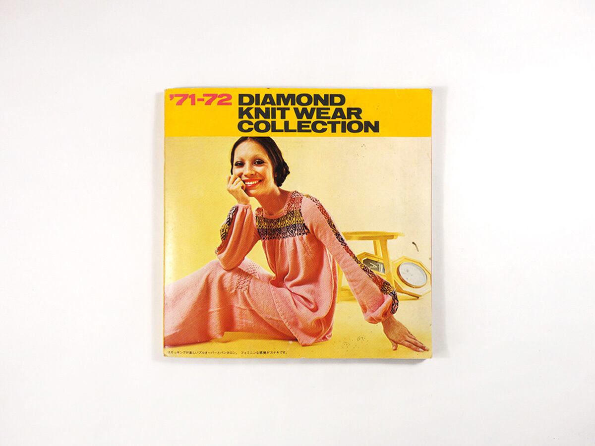 ダイヤ毛糸の主力製品を、機械編み・手編みのカラー作例とともに紹介する1971-72年の総合カタログ。製品ラインアップごとの4冊のカタログを1冊に合本し、巻末に〈毛糸見本〉が織り込まれている。